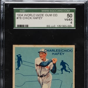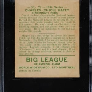 Lot # 1535: 1934 V354 World Wide Gum Canadian Goudey #78 Chick Hafey SGC VG/EX 50