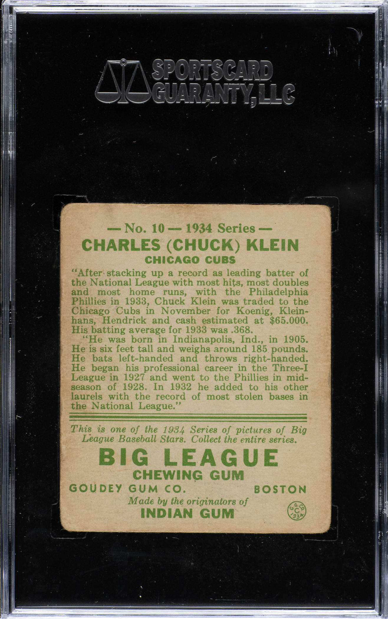 Graded FAIR 20 by SGC. Chicago Cubs Hall of Famer Chuck Klein.
