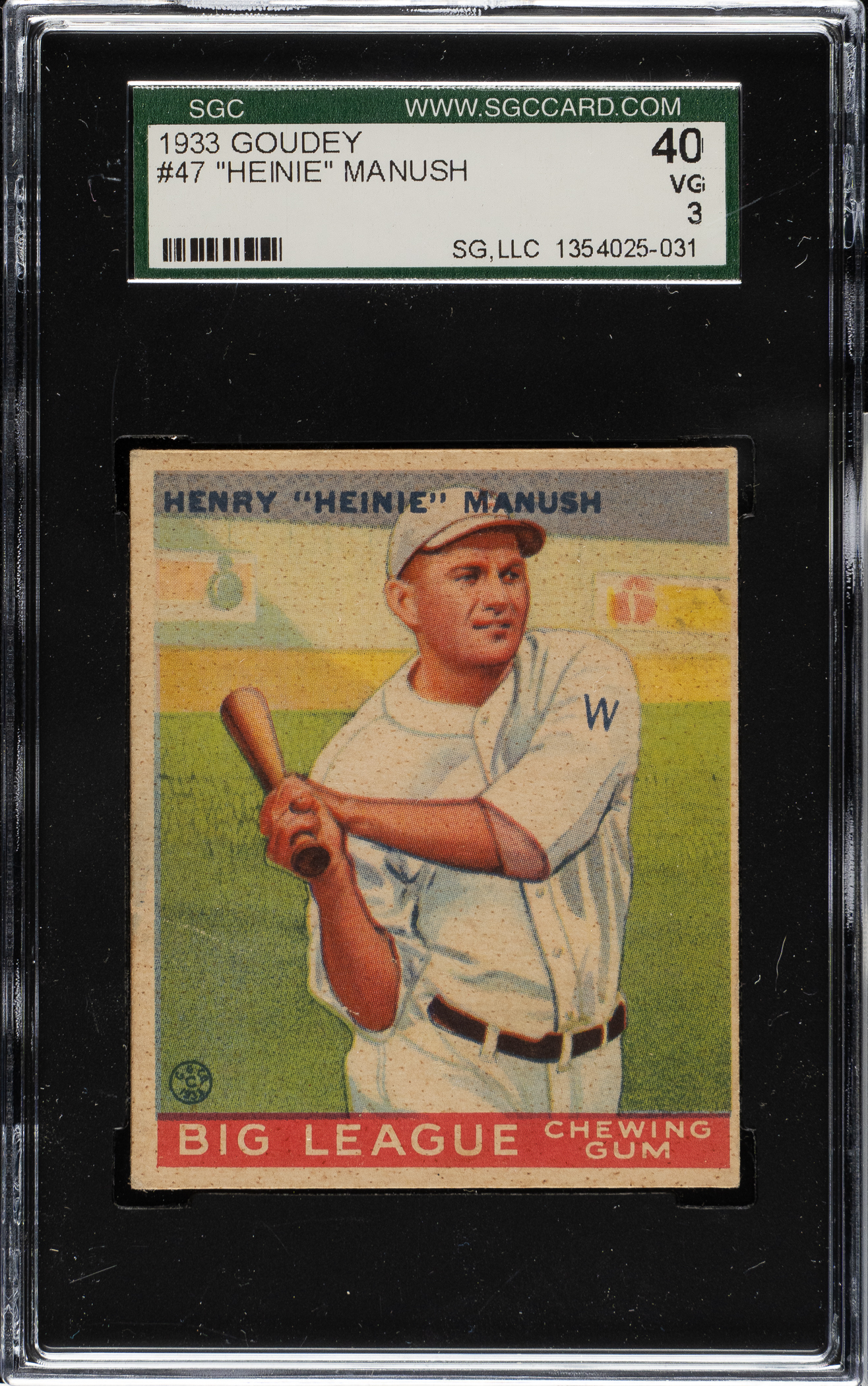 Lot # 1467: 1933 R319 Goudey #47 Heinie Manush SGC VG 40