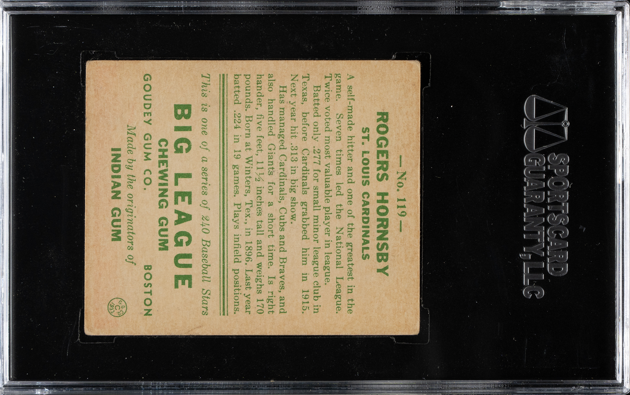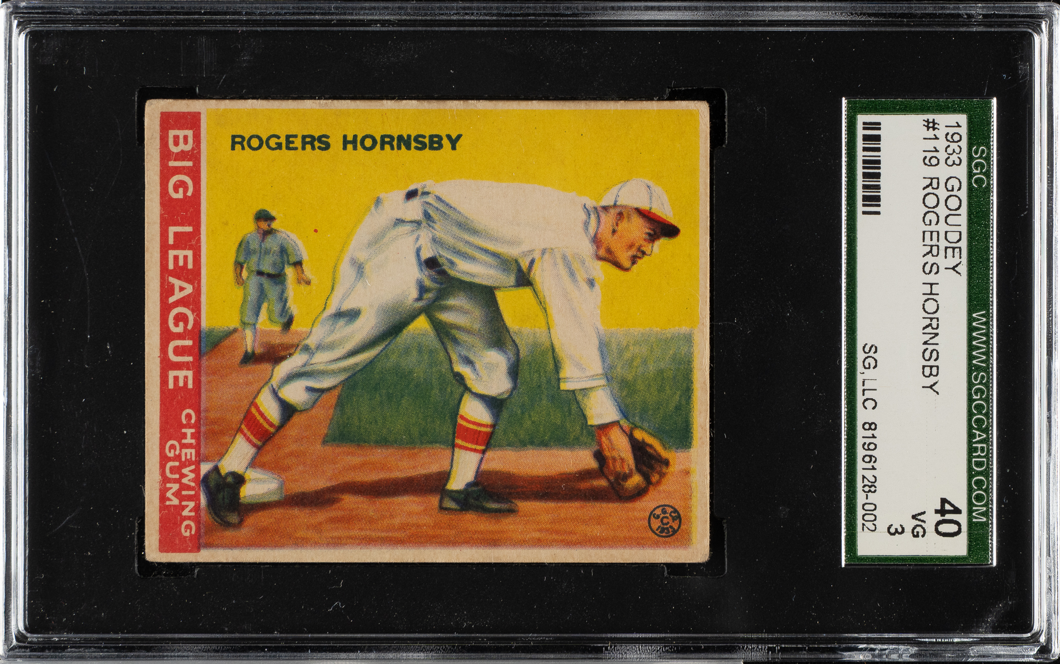 Lot # 1383: 1933 R319 Goudey #119 Rogers Hornsby SGC VG 40