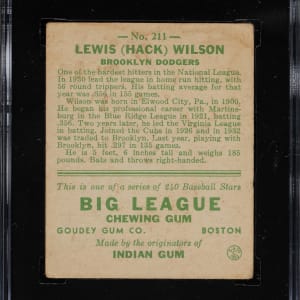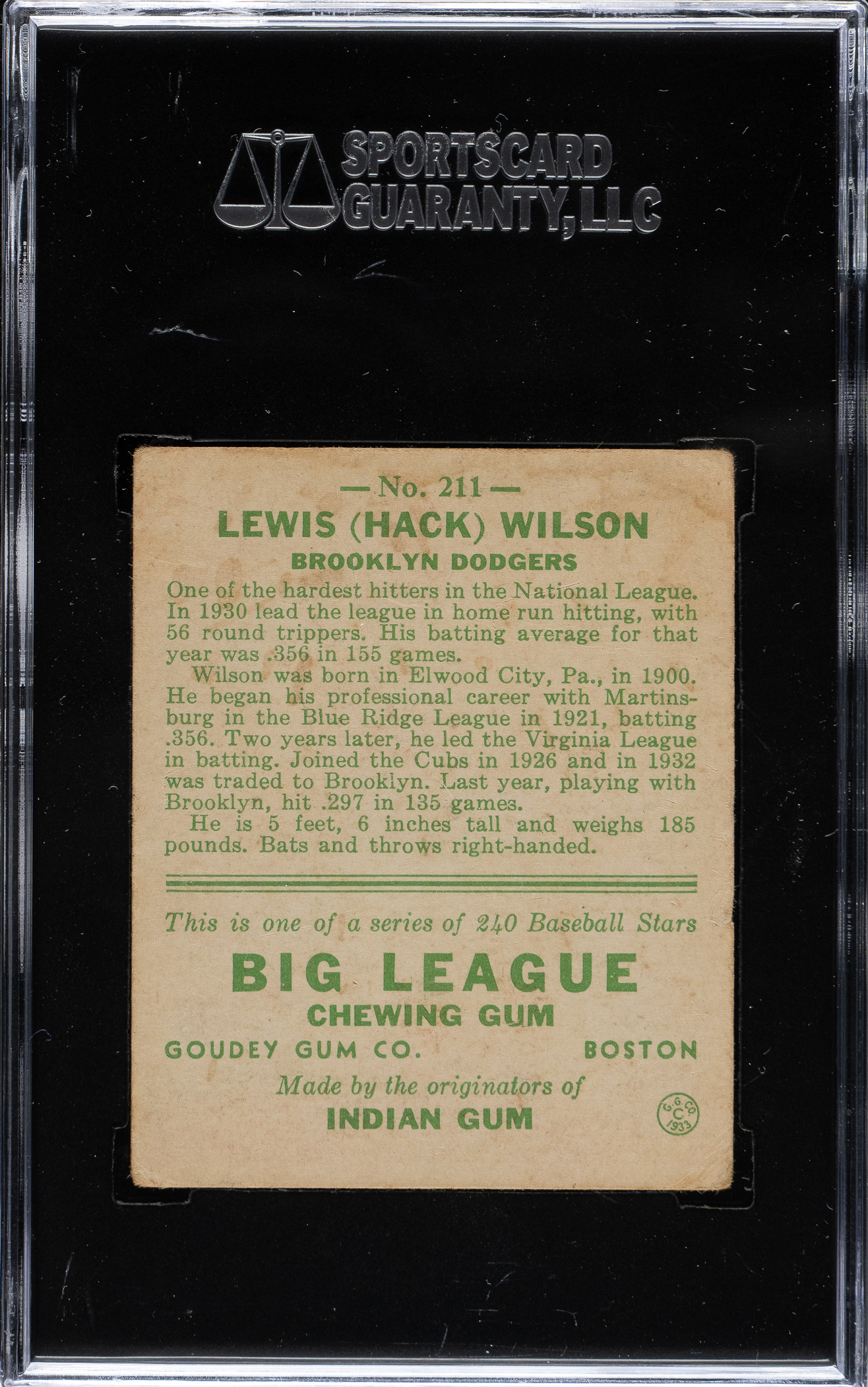 Lot # 1432: 1933 R319 Goudey #211 Hack Wilson SGC GOOD+ 35