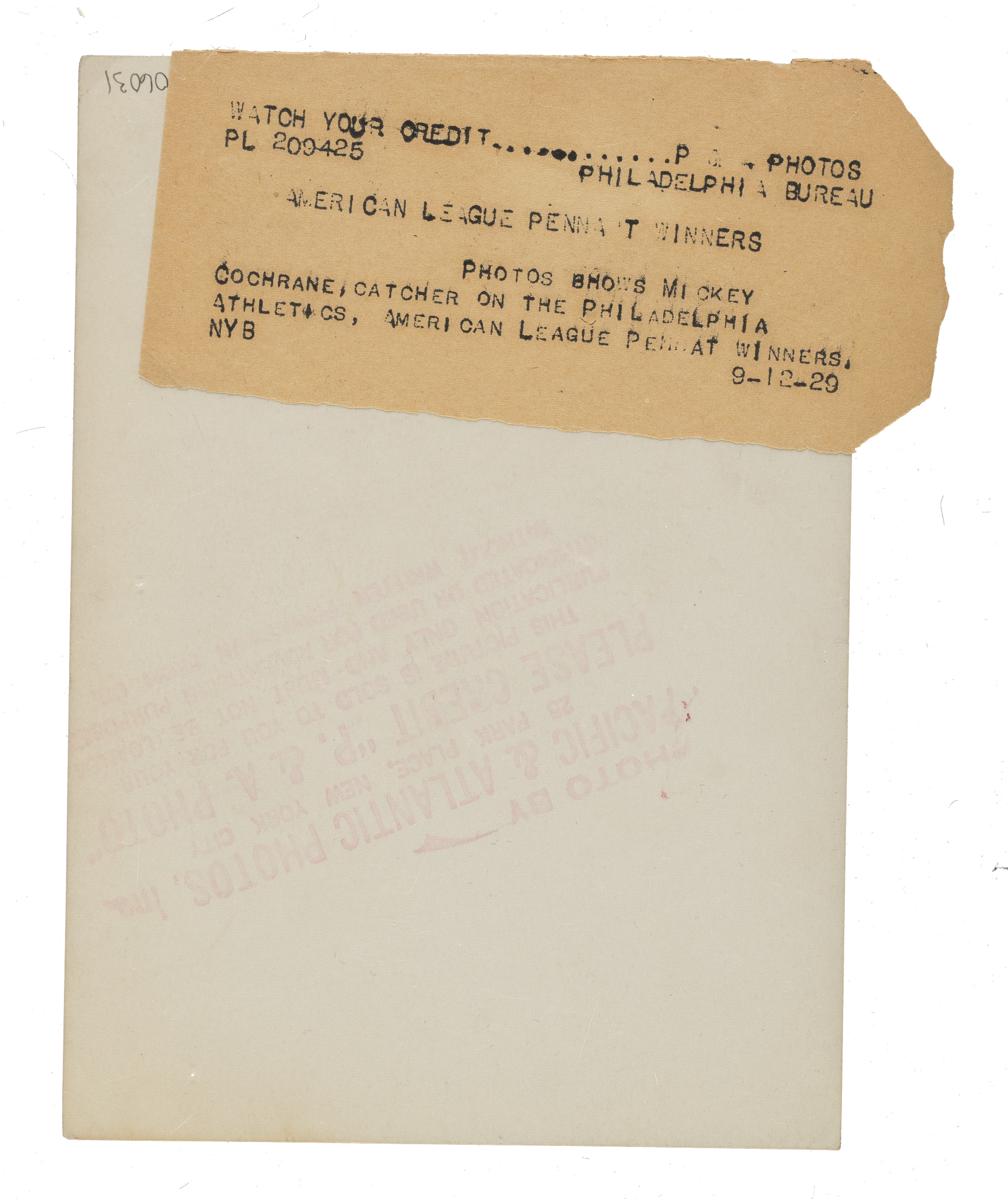 Philadelphia Athletics Hall of Famer Mickey Cochrane photograph. Certified as an original type I photograph by PSA/DNA. Total dimensions: 5 x 7 Inches. Full LOA from PSA/DNA.