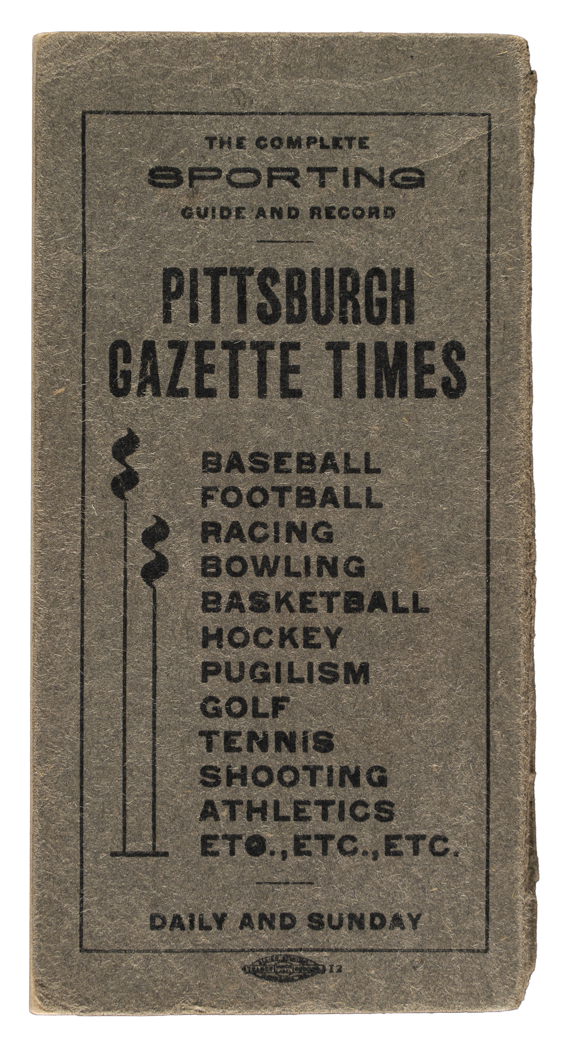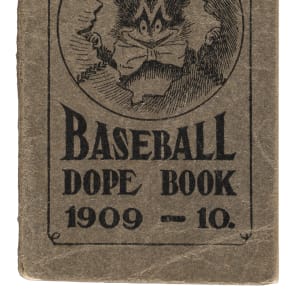 Offered is a soft-cover guide titled "The Gazette Times Baseball Dope Book 1909-10." Complete with both covers, the guide includes the rules of the game and a review of the 1909 National League season. In Good condition with a small tear along the bottom of the spine.