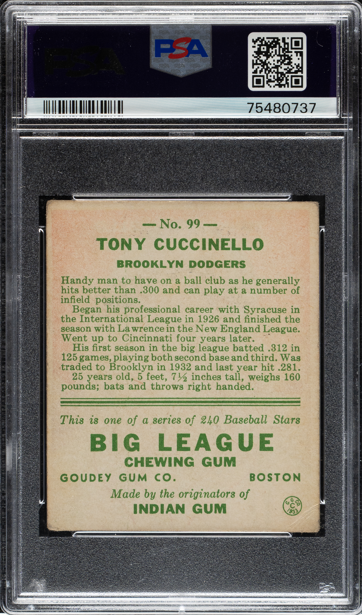 Lot # 1491: 1933 R319 Goudey #99 Tony Cuccinello PSA VG 3