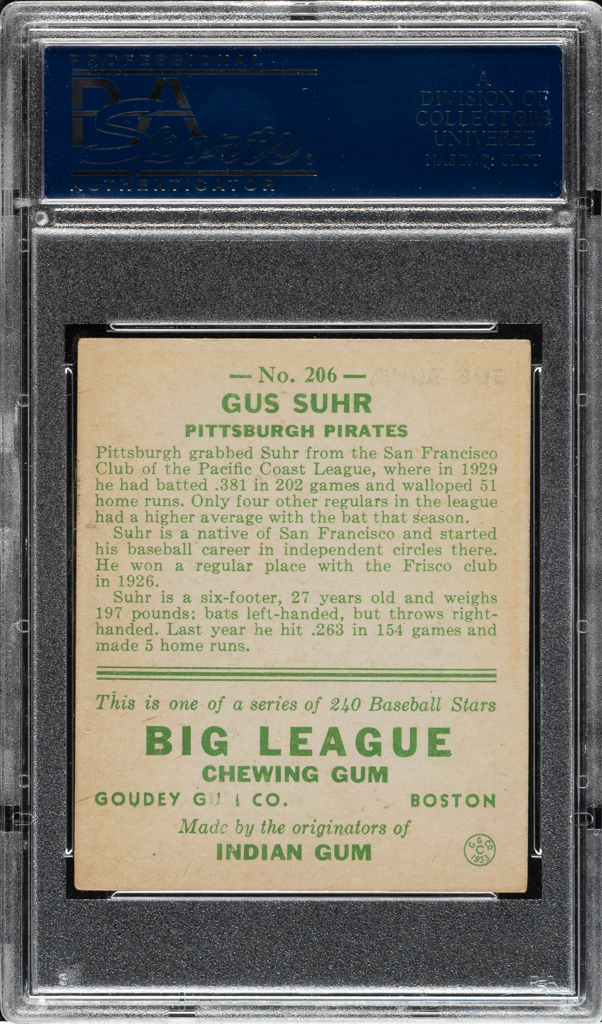 Lot # 1430: 1933 R319 Goudey #206 Gus Suhr PSA VG-EX+ 4.5