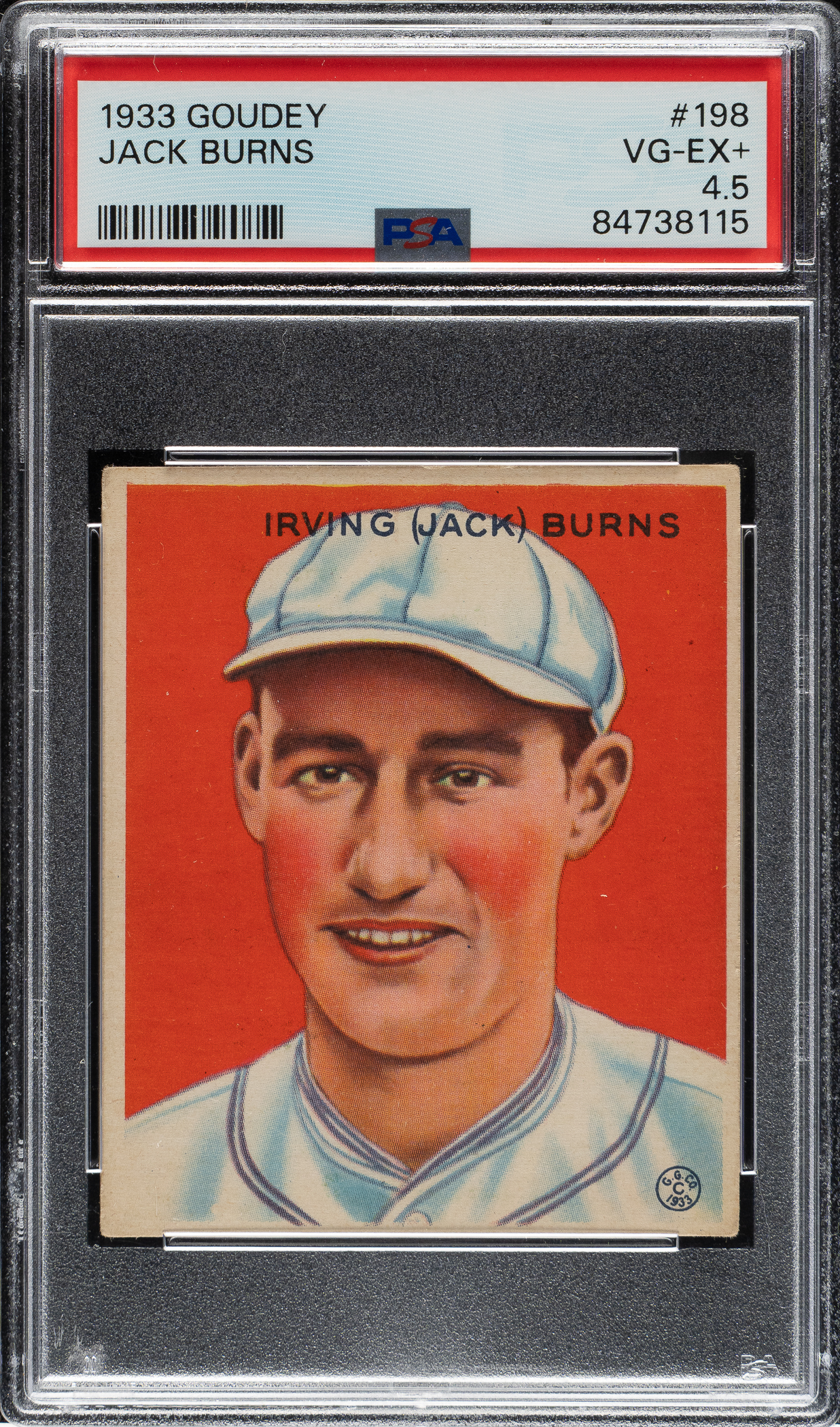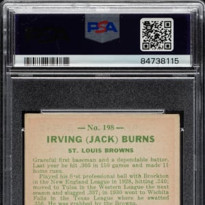 Lot # 1423: 1933 R319 Goudey #198 Jack Burns PSA VG-EX+ 4.5