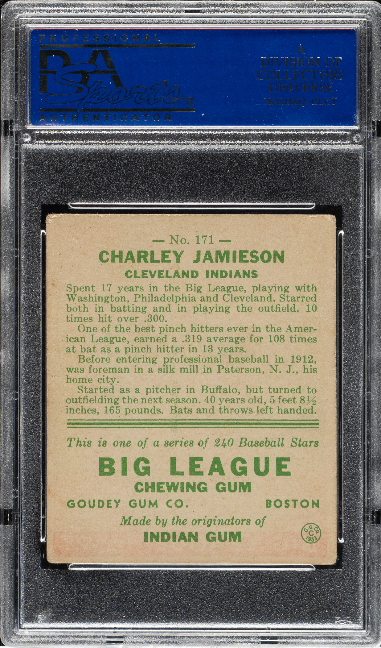 Lot # 1407: 1933 R319 Goudey #171 Charley Jamieson PSA VG-EX 4