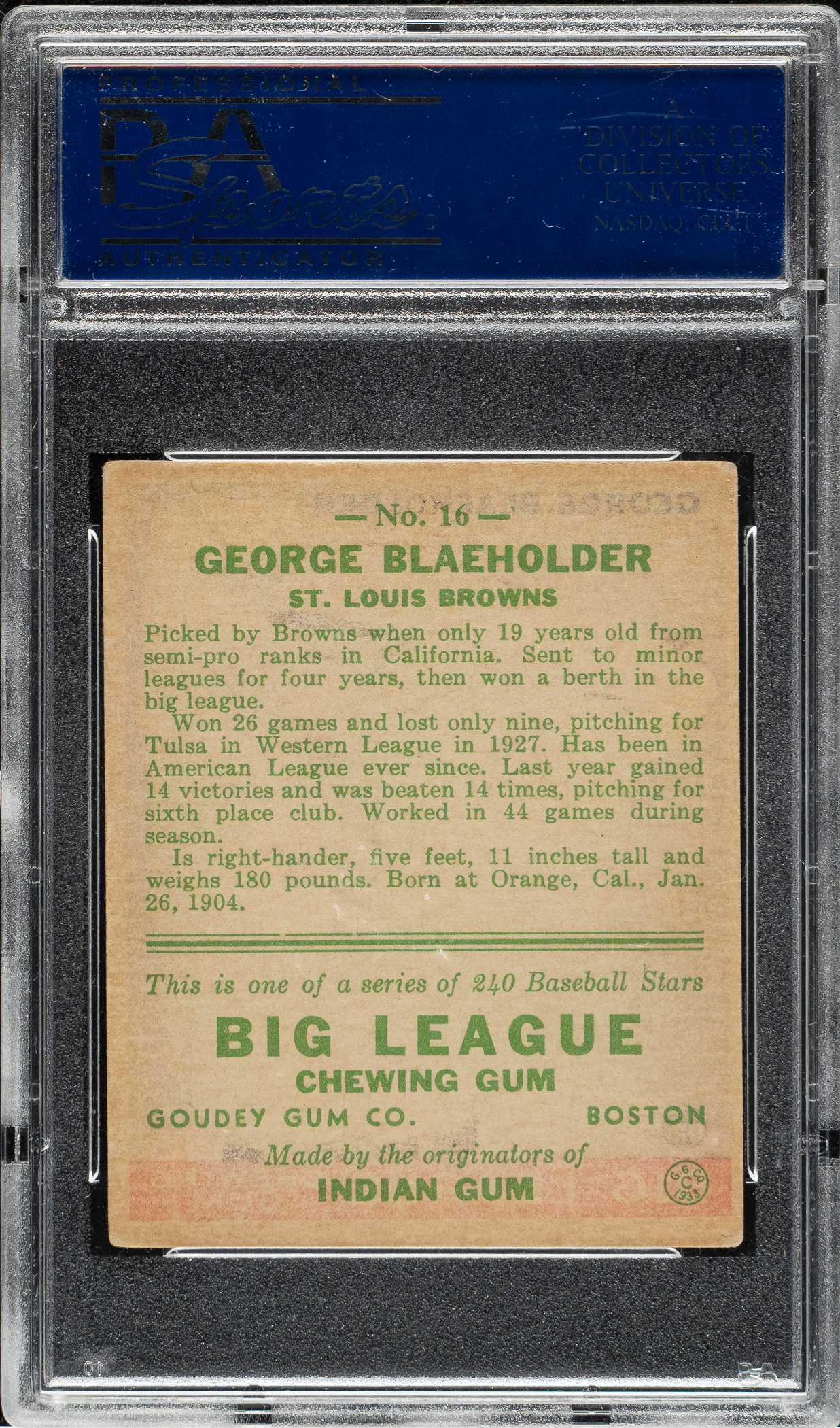 Graded VG-EX 4 by PSA. St. Louis Browns.
