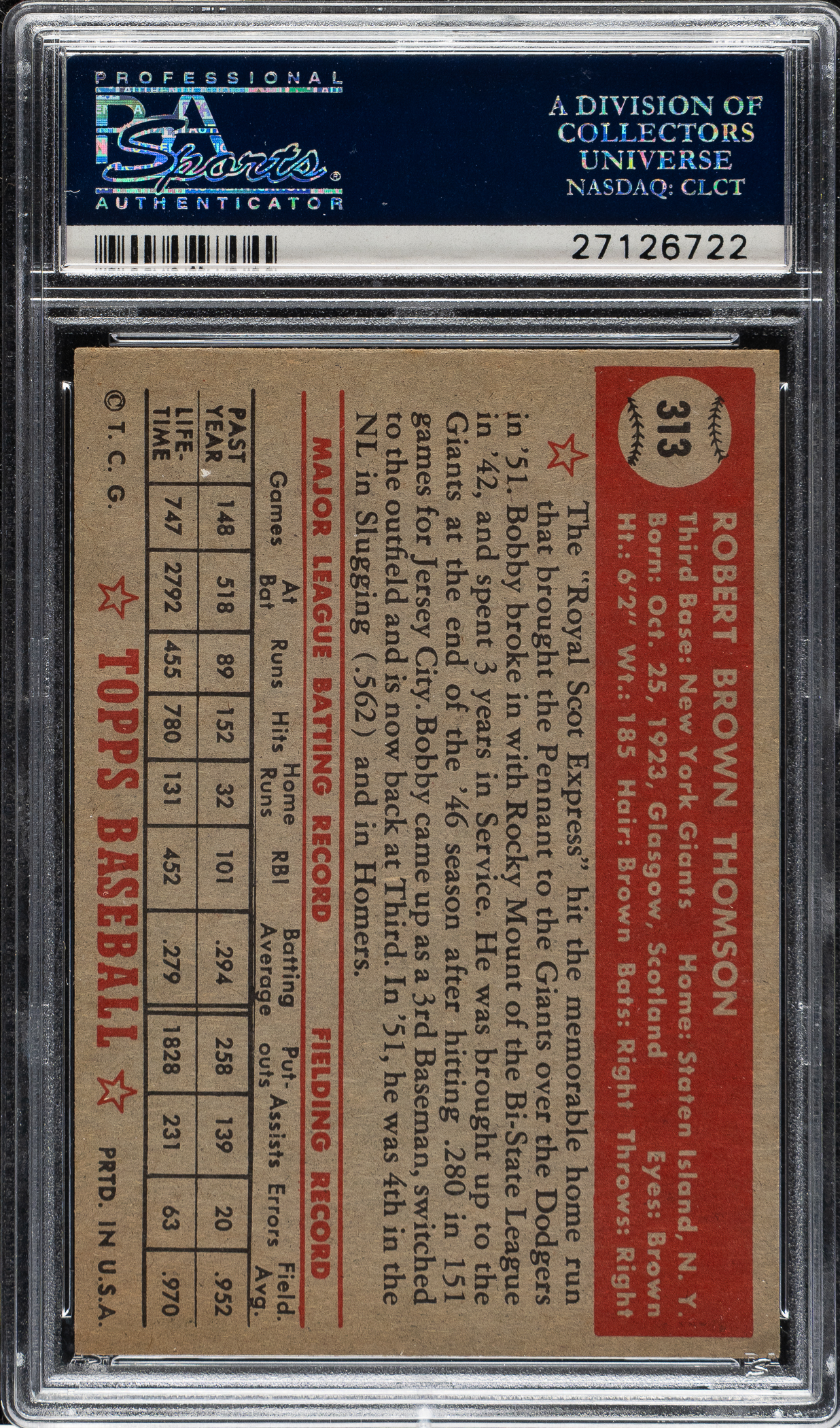 Graded NM 7 by PSA. New York Giants.