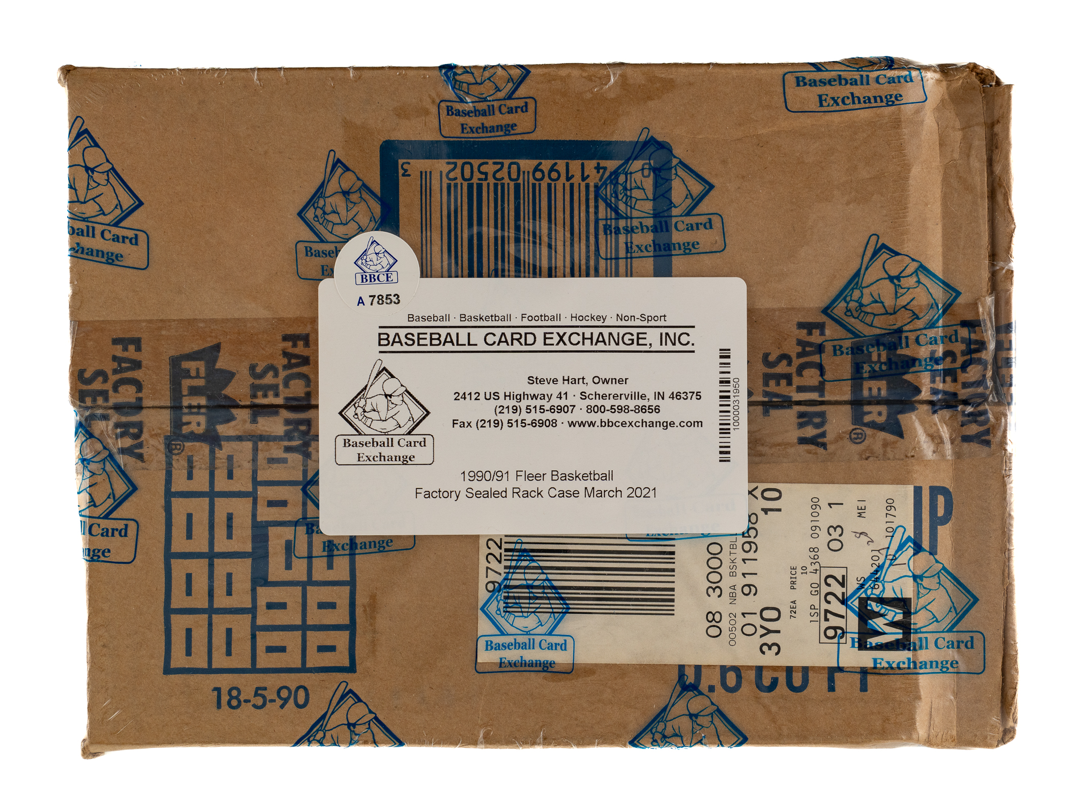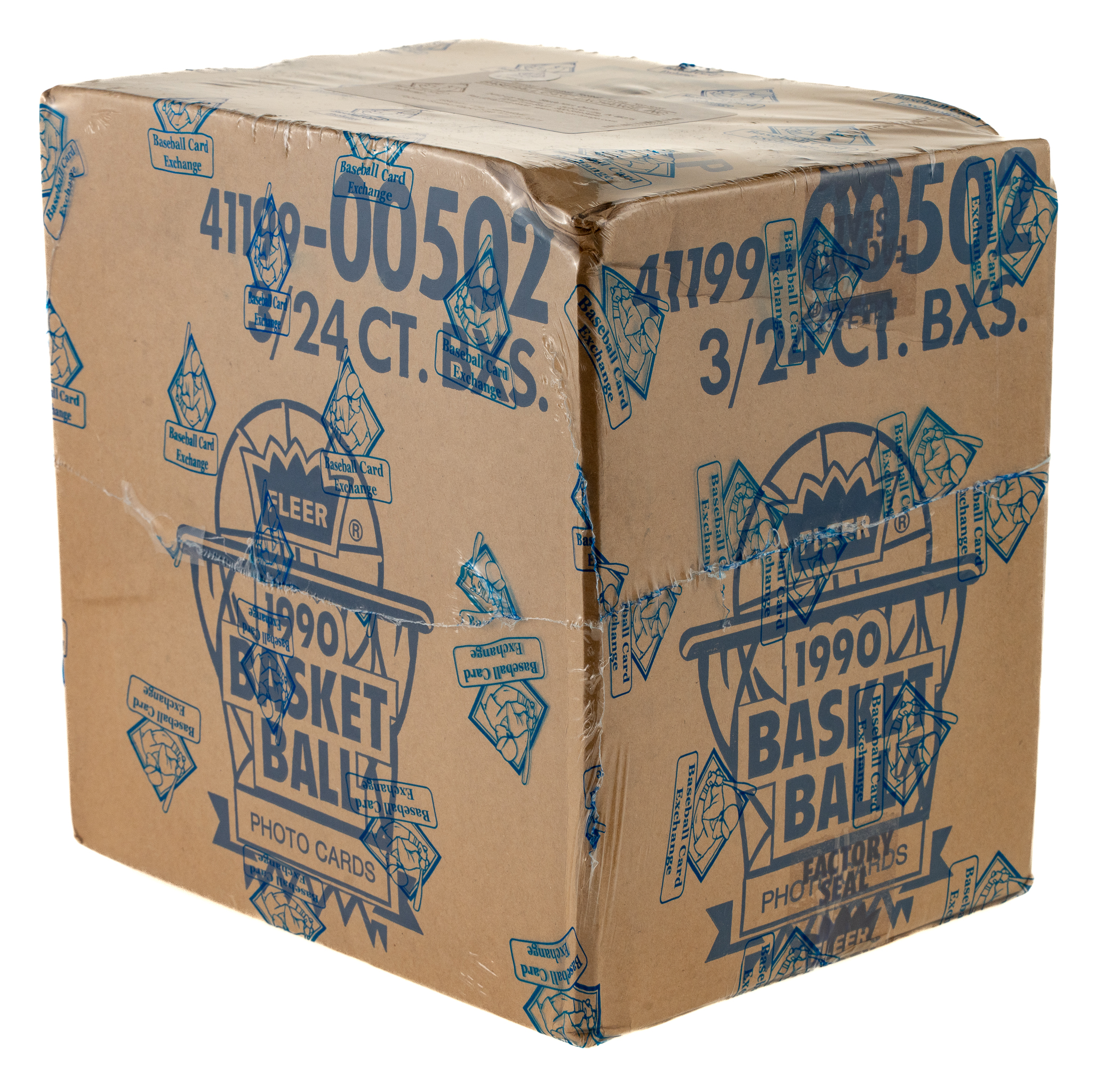 Complete, original rack box case of 1990-1991 Fleer Basketball, which contains three unopened boxes with twenty-four packs per box for a total of seventy-two packs. With each pack containing 45 cards, the case represents a total of 3,240 cards. This case comes shrink-wrapped by Baseball Card Exchange (owned by Steve Hart, the foremost expert on unopened material). The "factory sealed" distinction is particularly important and makes the offered case even more impressive. The 1990-1991 Fleer set includes rookie cards of Tim Hardaway and Shawn Kemp, and key cards of Michael Jordan and Magic Johnson. The original outer case displays moderate wear. A tremendous opportunity to acquire this rarely seen rack case from the popular 1990-1991 Fleer Basketball issue. The size/weight of this item requires that there will be an additional shipping charge for this lot.