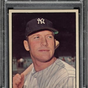 Graded NM-MT 8 by PSA. Beautiful high-grade example of 1961 Topps #300 Mickey Mantle, considered by many to be one of his greatest cards and dating from one of his biggest seasons. This example displays vibrant colors, outstanding clarity, crisp white borders, and strong corners. Clean reverse. This is a superb example of the highest profile card from the magical season of 1961.