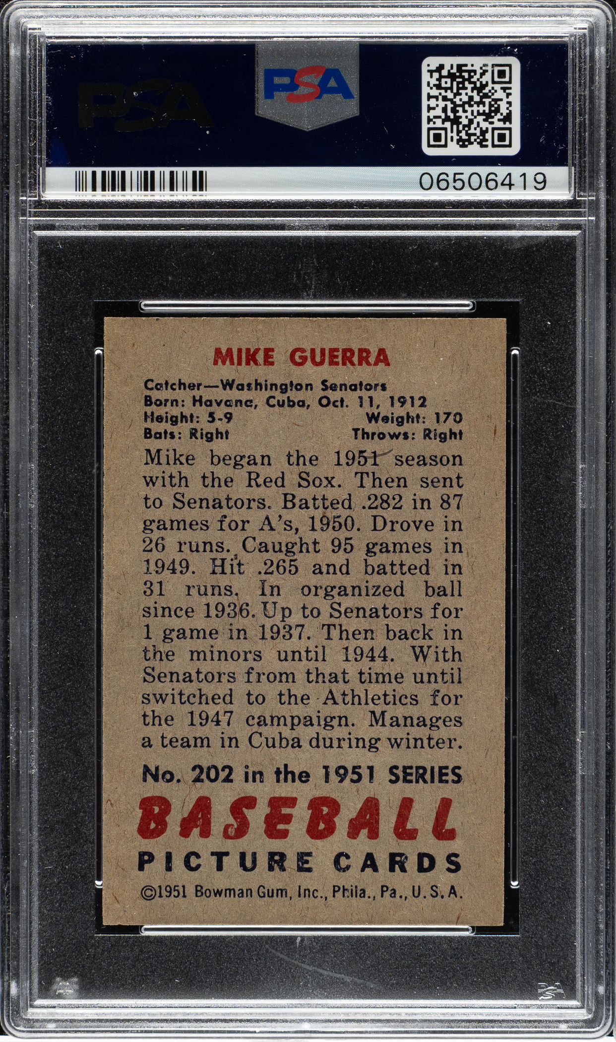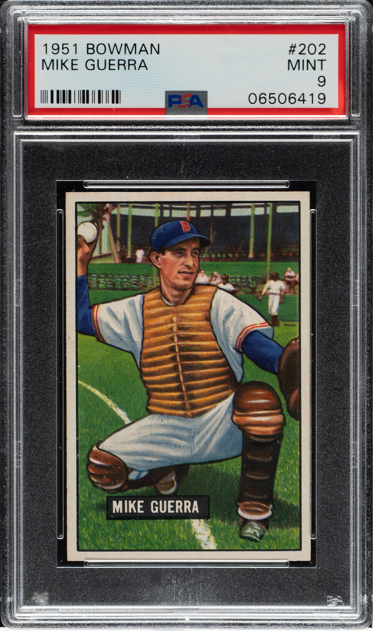 Lot # 929: 1951 Bowman #202 Mike Guerra PSA MINT 9