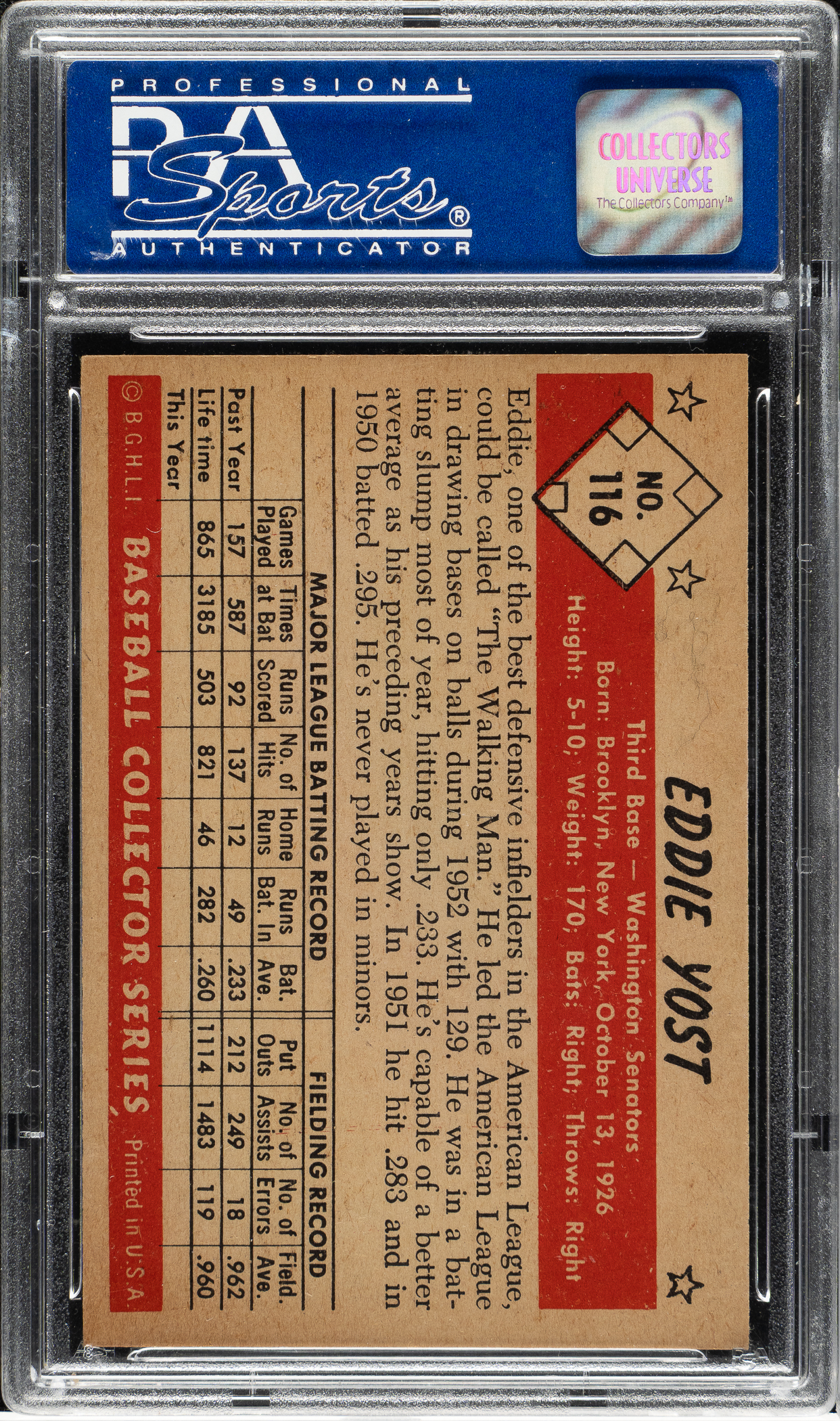 Graded NM-MT 8 by PSA. Washington Senators. Only seven examples graded higher.