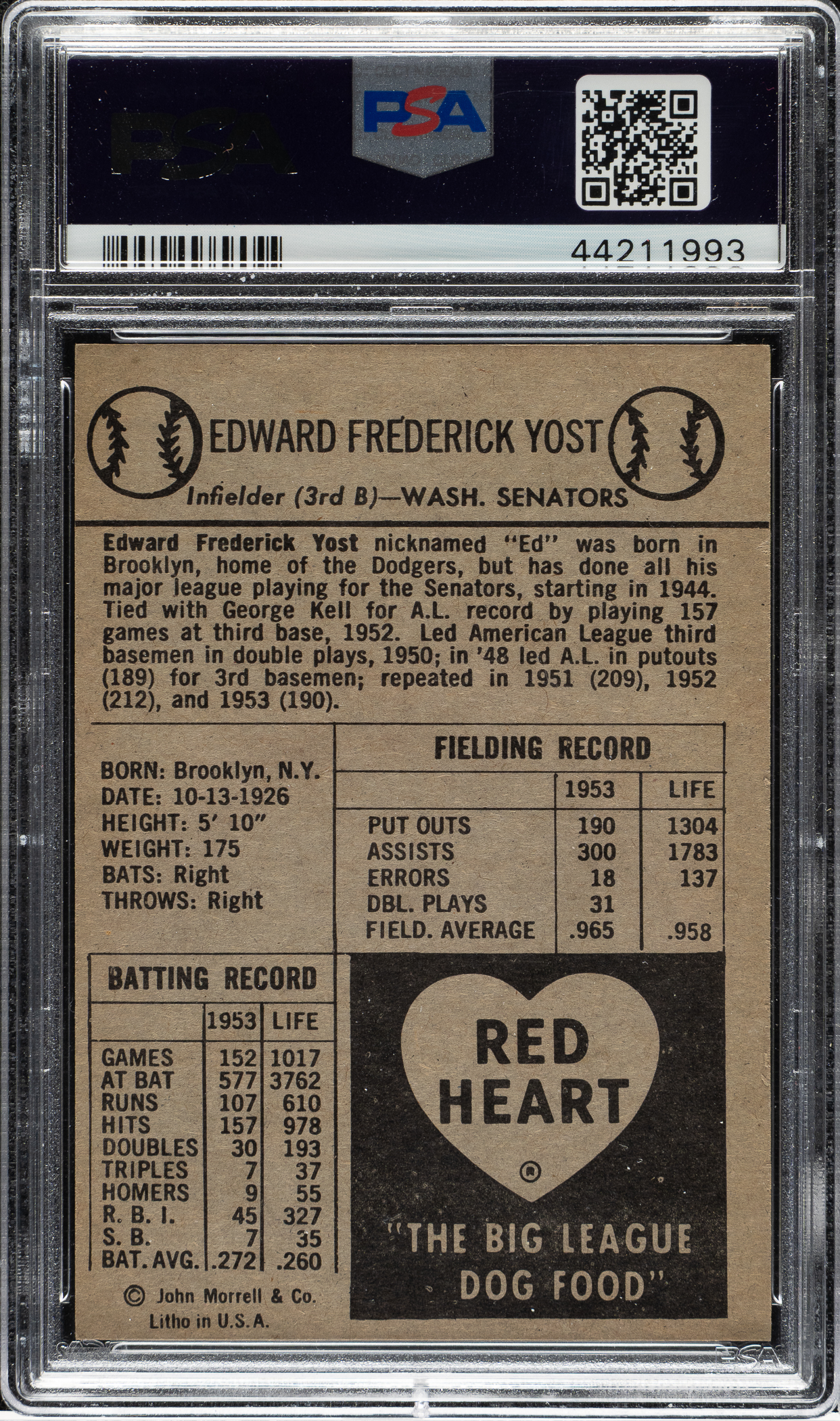 Graded MINT 9 by PSA. Washington Senators Of the nearly 300 examples of this card PSA has evaluated to date, none have graded higher.