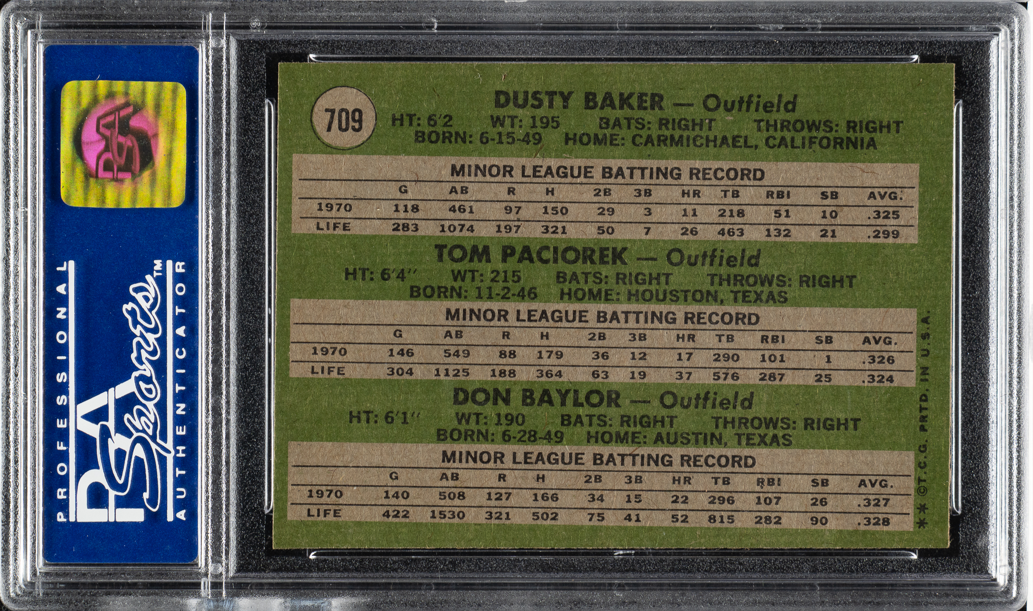 Graded NM-MT 8 by PSA. High-grade rookie card featuring Dusty Baker (Atlanta Braves) and Don Baylor (Baltimore Orioles).