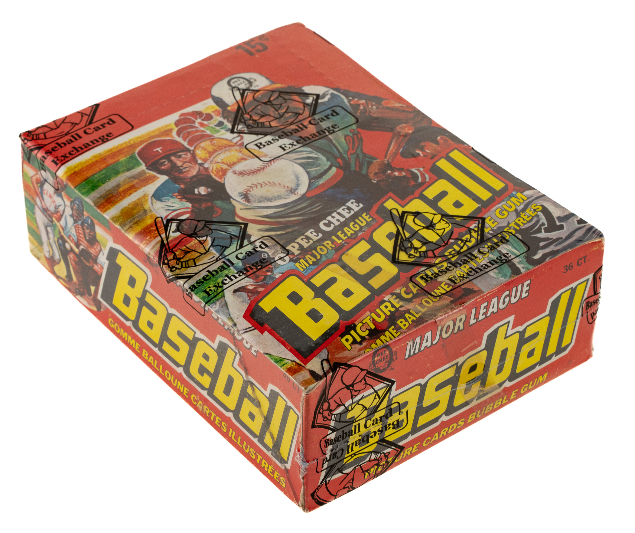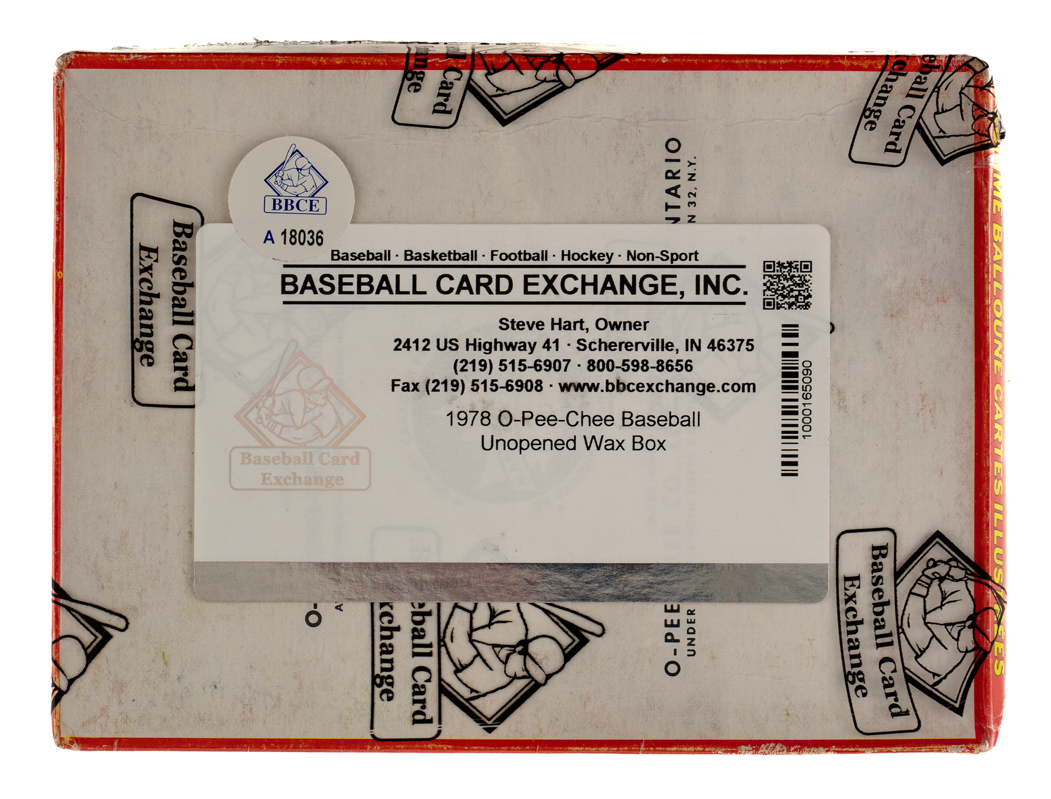 Complete, original unopened wax box of 1978 O-Pee-Chee baseball containing 36 unopened wax packs. The 1978 O-Pee-Chee set includes many Hall of Famers and stars, including the rookie card of Eddie Murray. The display box exhibits bright colors and light shelf wear. The box comes shrink-wrapped by Baseball Card Exchange (owned by Steve Hart, the foremost expert on unopened material).