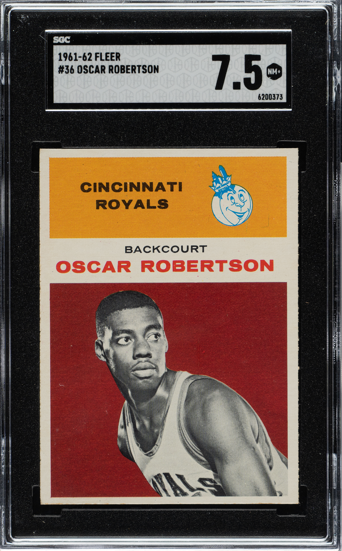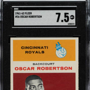 Graded NM+ 7.5 by SGC. Fantastic example of Hall of Famer Oscar Robertson’s rookie card from the classic 1961-1962 Fleer basketball set. This well-centered example displays vibrant colors, outstanding image clarity, and strong corners. Clean reverse. This is an extremely attractive example from one of the most significant basketball sets ever produced and would make a worthy addition to a high-quality 1961-1962 Fleer set or Hall of Fame rookie collection.