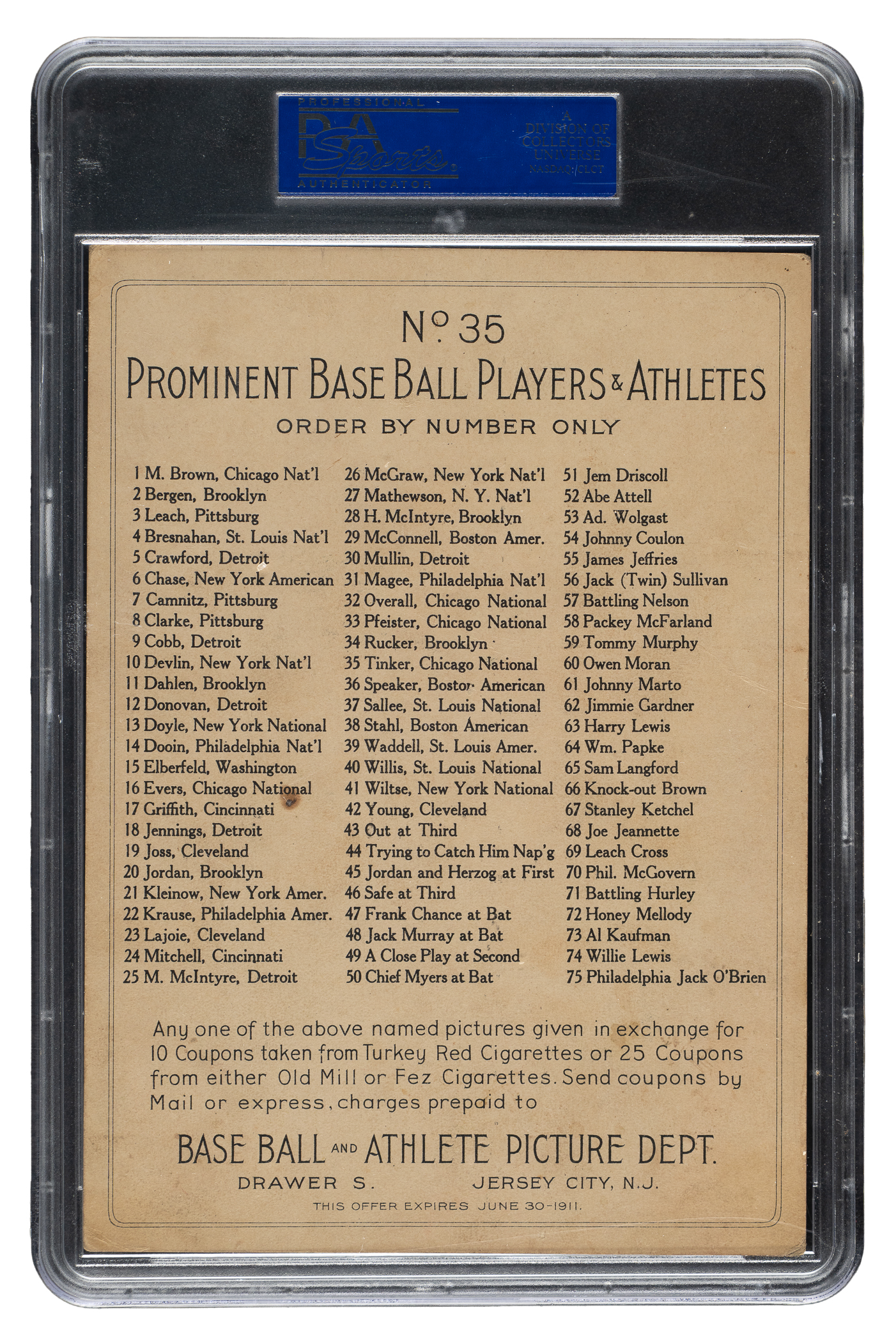 Graded VG 3 by PSA. Chicago Cubs Hall of Famer Joe Tinker.