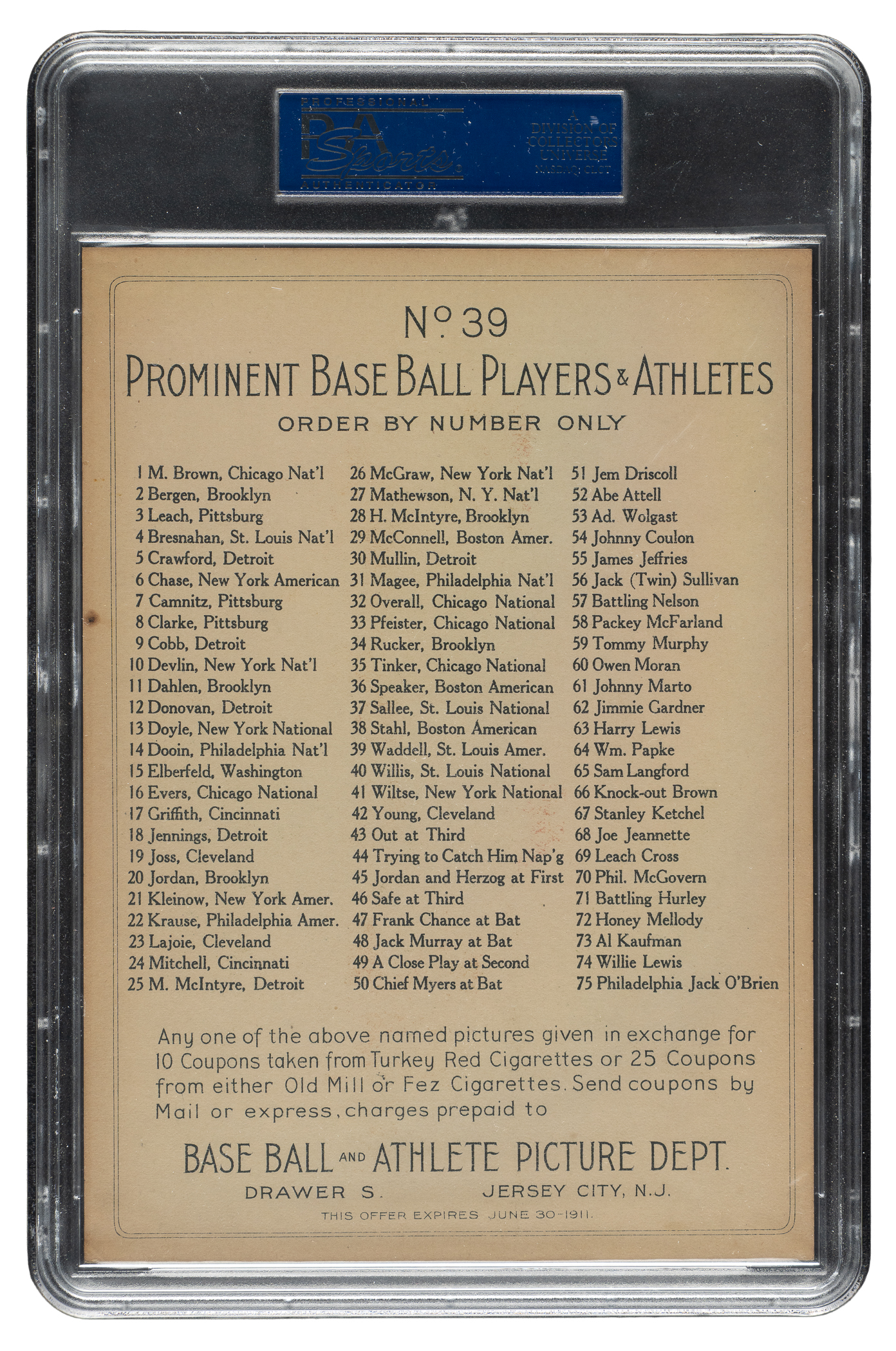 Graded EX 5 by PSA. St. Louis Browns Hall of Famer Rube Waddell.