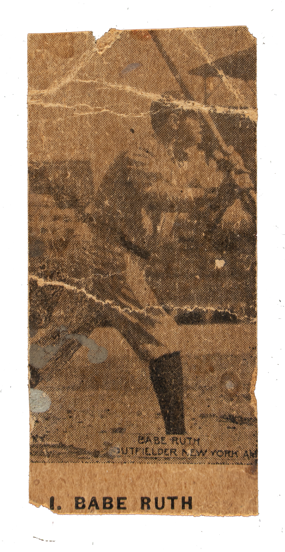 Rarely offered example of #1 Babe Ruth (black and white variation) from the W511 strip-card series. Cut by hand, this example displays uneven cuts on all four sides. A number of heavy creases are visible, and a tiny chip is present on the top edge. SGC declined to encapsulate the card due to being too fragile.
