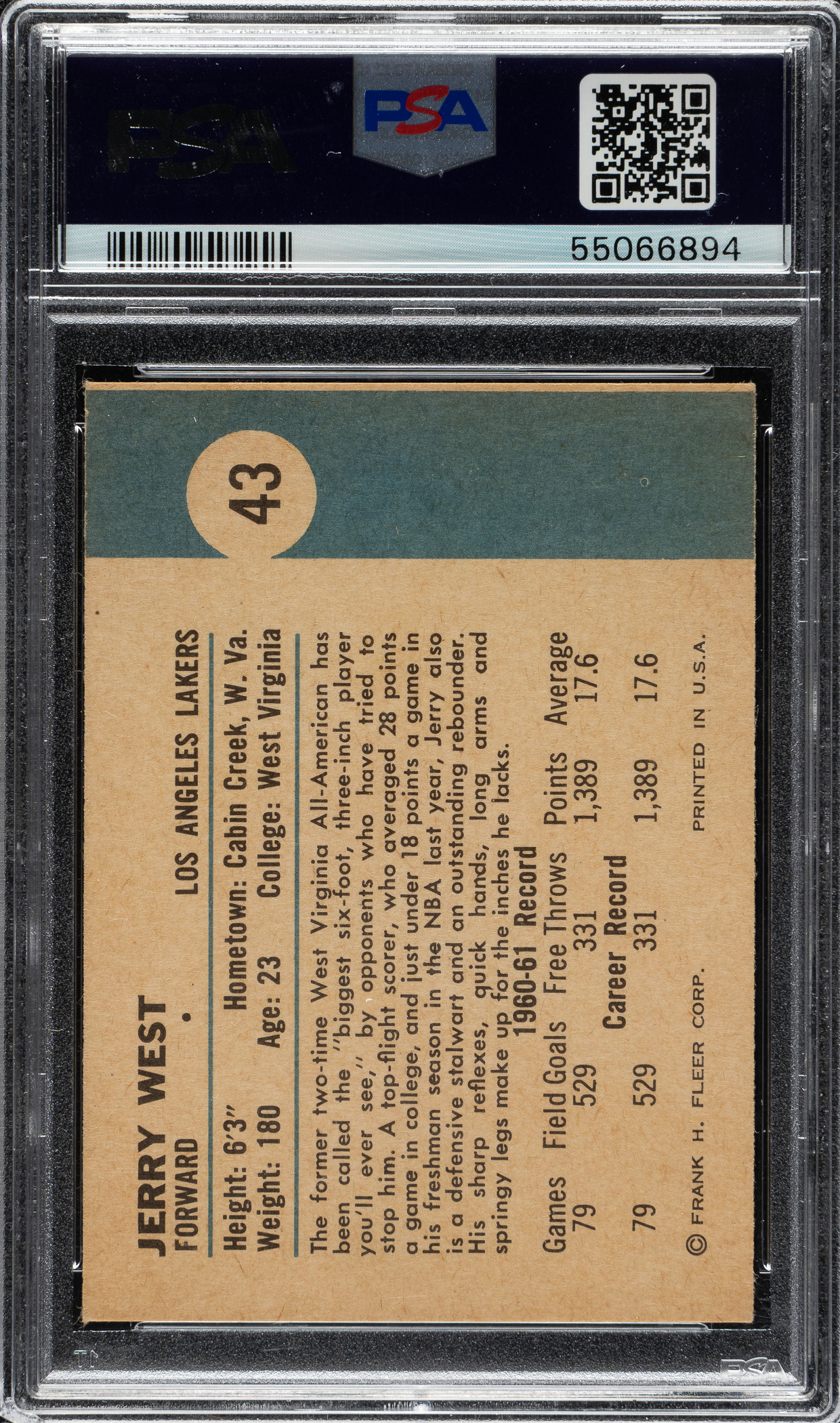 Graded EX-MT 6 by PSA. Los Angeles Lakers Hall of Famer Jerry West.