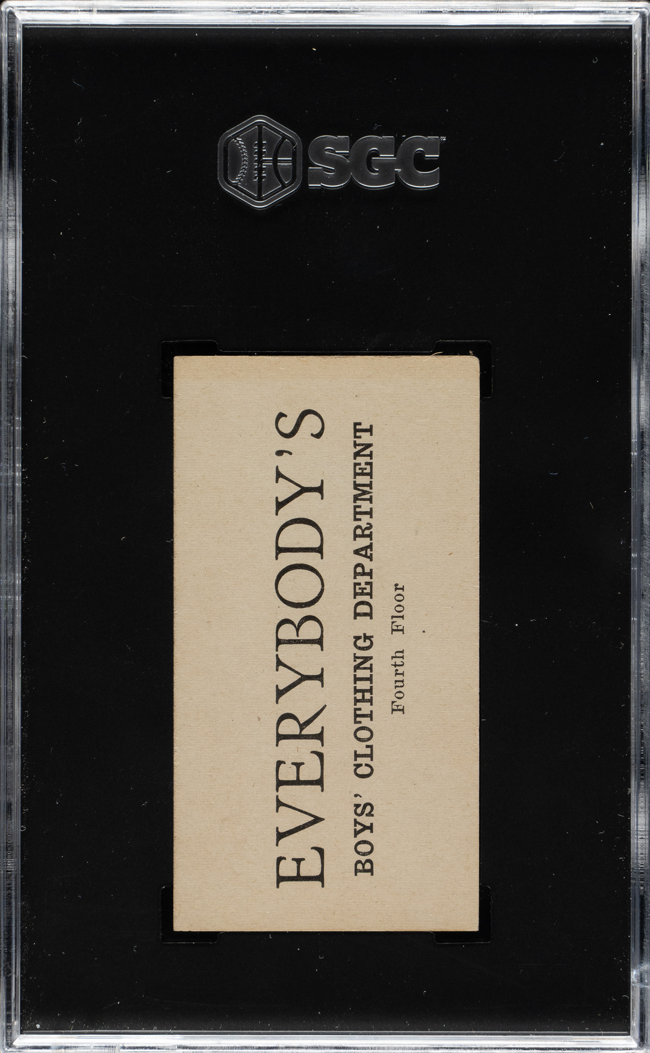 Graded EX 5 by SGC. One of only two examples graded at this level by SGC with just one higher. Presented is a very attractive example of #121 John Miller from the 1916 M101-4 set featuring an Everybody's Clothing Store advertising reverse. The Everybody's reverse is among the scarcest of the various advertisers found on M101-4 cards. The offered example displays a crisp image and light corner wear (weaker top left). The important advertising reverse is boldly printed and clean. This is an outstanding example of this rare advertising reverse, which would be an ideal addition to any M101-4 or type-card collection.