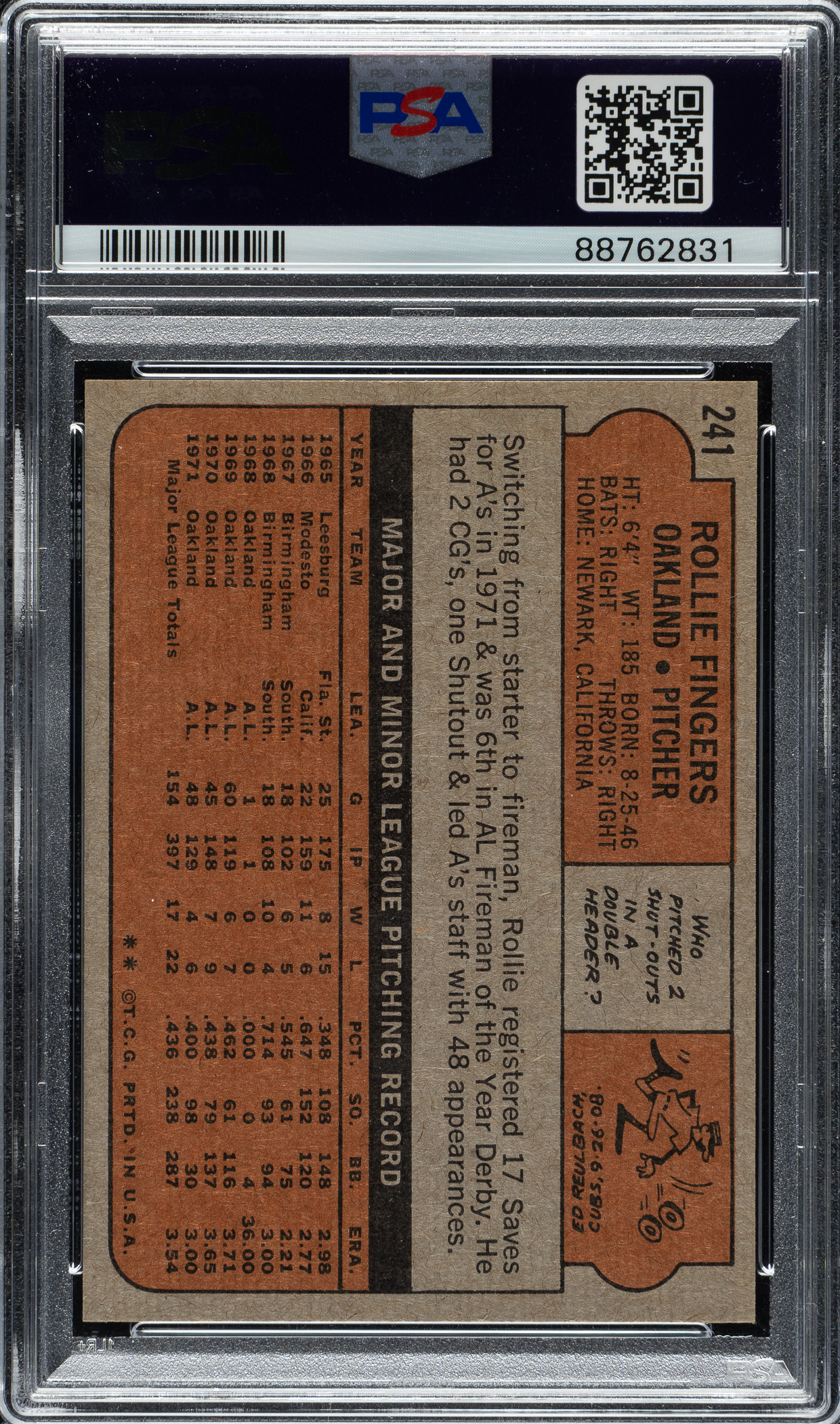 Graded GEM MINT 10 by PSA. Oakland Athletics Hall of Famer Rollie Fingers.