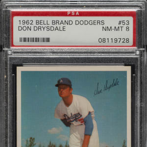 Graded NM-MT 8 by PSA. Los Angeles Dodgers Hall of Famer Don Drysdale. One of seven examples graded at this level by PSA with just one higher.