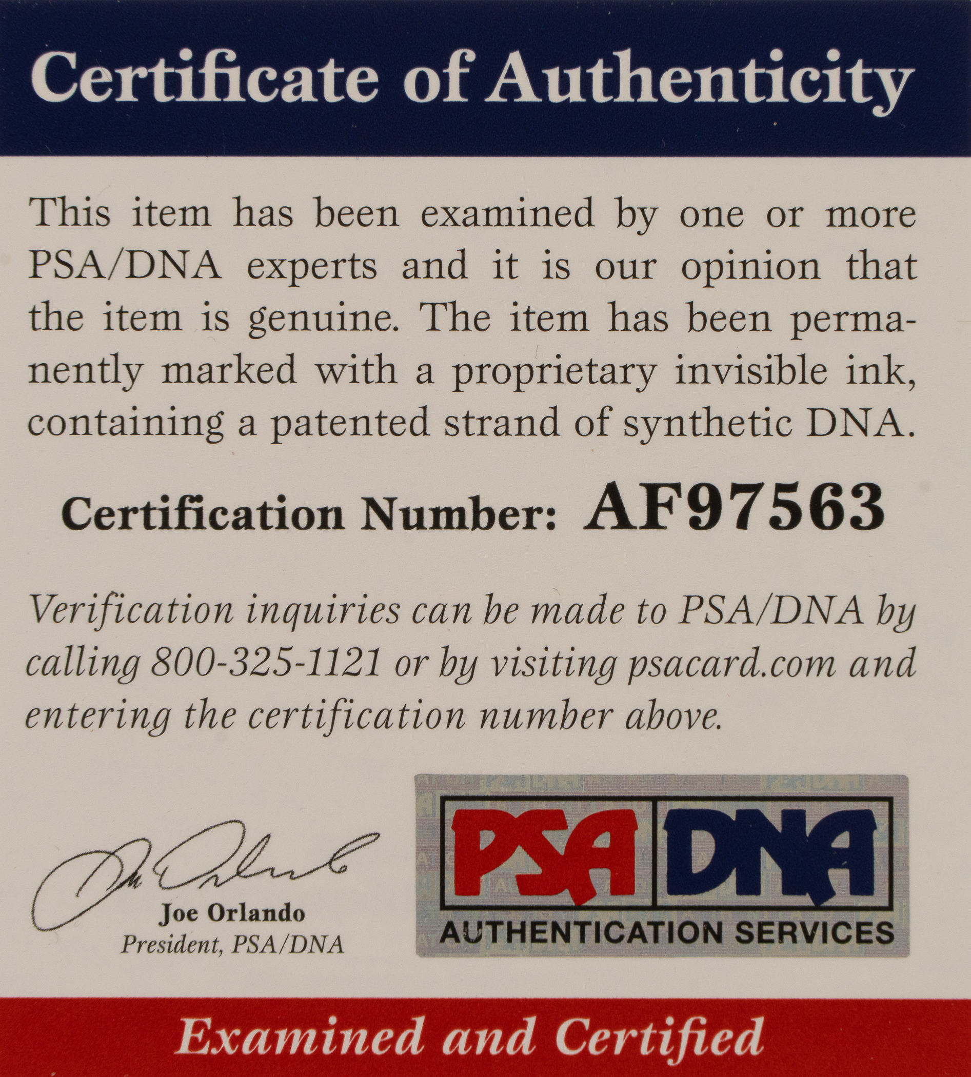 Official American League baseball (MacPhail) signed by pitcher Kirby Higbe in blue ink across the sweet spot. Higbe passed away in 1985 at the age of 70. The ball displays light toning, otherwise in Excellent to Mint condition overall. Basic certification from PSA/DNA (a corresponding sticker is affixed to the ball).