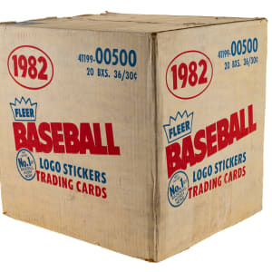 Complete original unopened wax case of 1982 Fleer baseball containing 20 boxes with 36 packs per box for a total of 720 packs. With each pack containing 15 cards, the case represents a total of 10,800 cards. The "factory-sealed" distinction is particularly important and makes the offered case even more impressive. The 1982 Fleer set, which is one of the most popular sets of the 1980s, features the rookie card of Hall of Famer Cal Ripken, as well as numerous other stars and Hall of Famers, including Nolan Ryan, Pete Rose, and Rickey Henderson. The original factory seals are intact with moderate outer box wear, including a couple of punctures. An excellent opportunity to acquire this factory-sealed wax case from the popular 1982 Fleer baseball issue. The size/weight of this item requires that there will be an additional shipping charge for this lot.