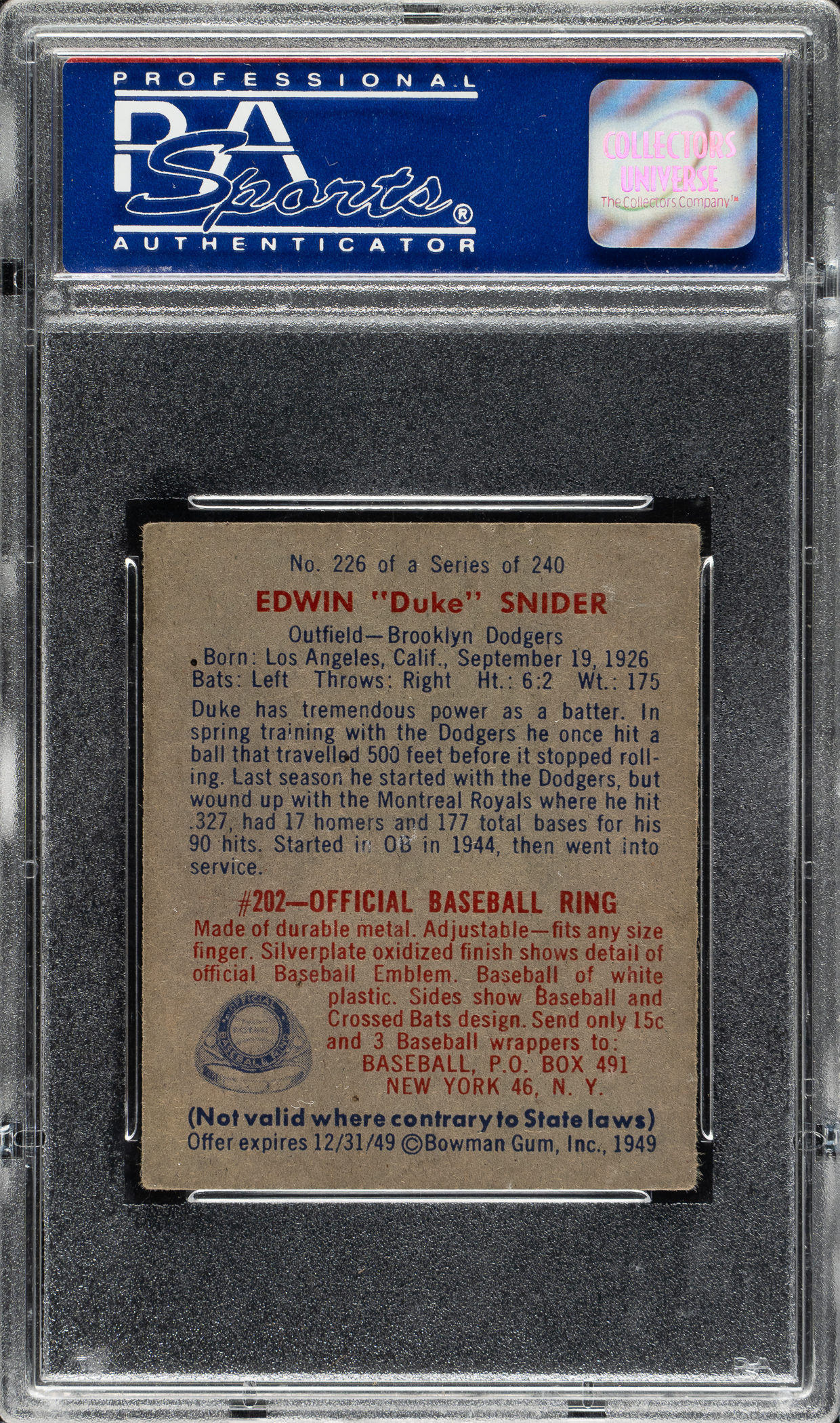 Graded EX 5 by PSA. Brooklyn Dodgers Hall of Famer Duke Snider.
