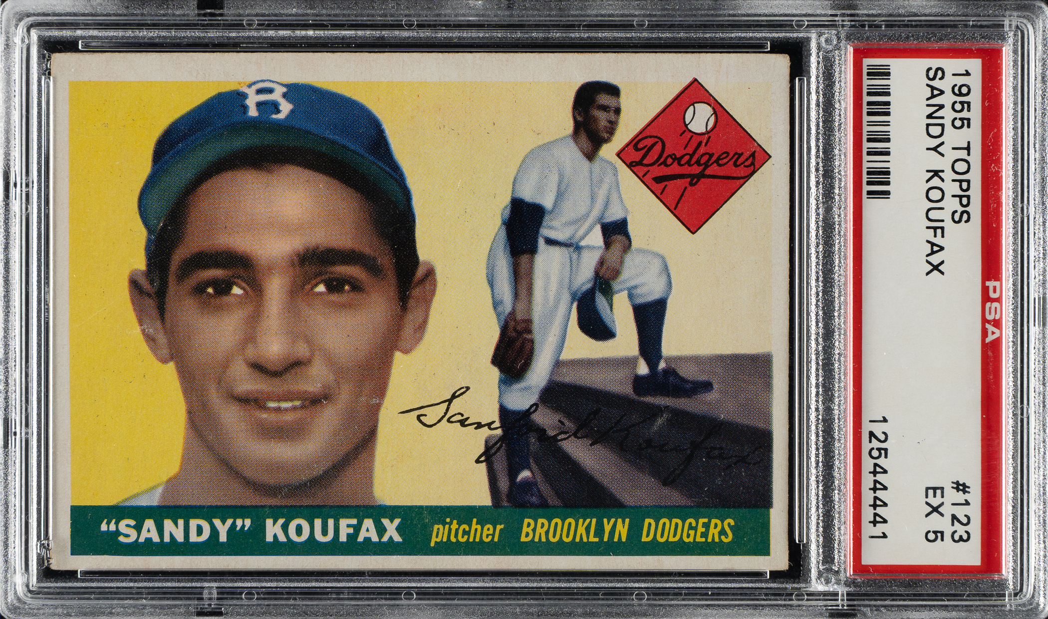 Graded EX 5 by PSA. Brooklyn Dodgers Hall of Famer Sandy Koufax.