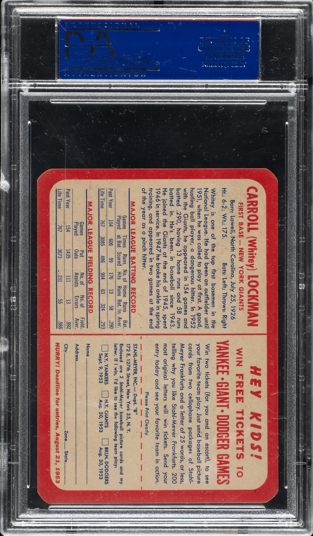 Graded NM-MT 8 by PSA. New York Giants. One of only five examples graded at this level by PSA with none higher!