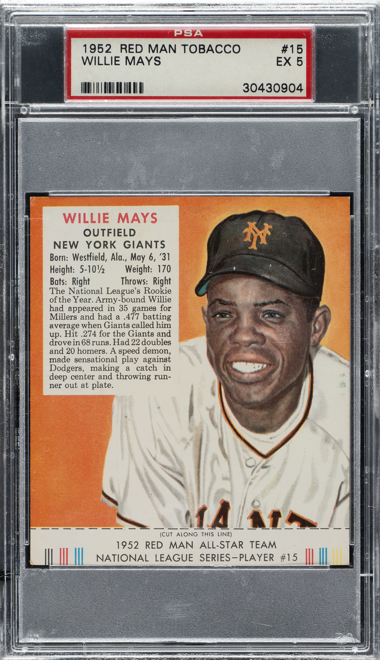 Graded EX 5 by PSA. New York Giants Hall of Famer Willie Mays.