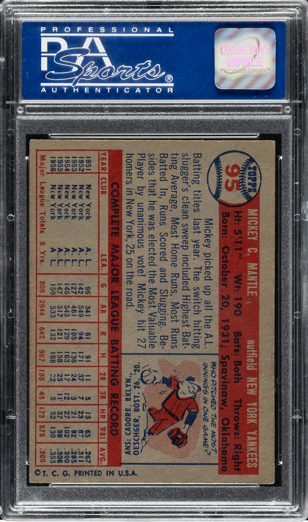 Graded EX 5 by PSA. New York Yankees Hall of Famer Mickey Mantle.