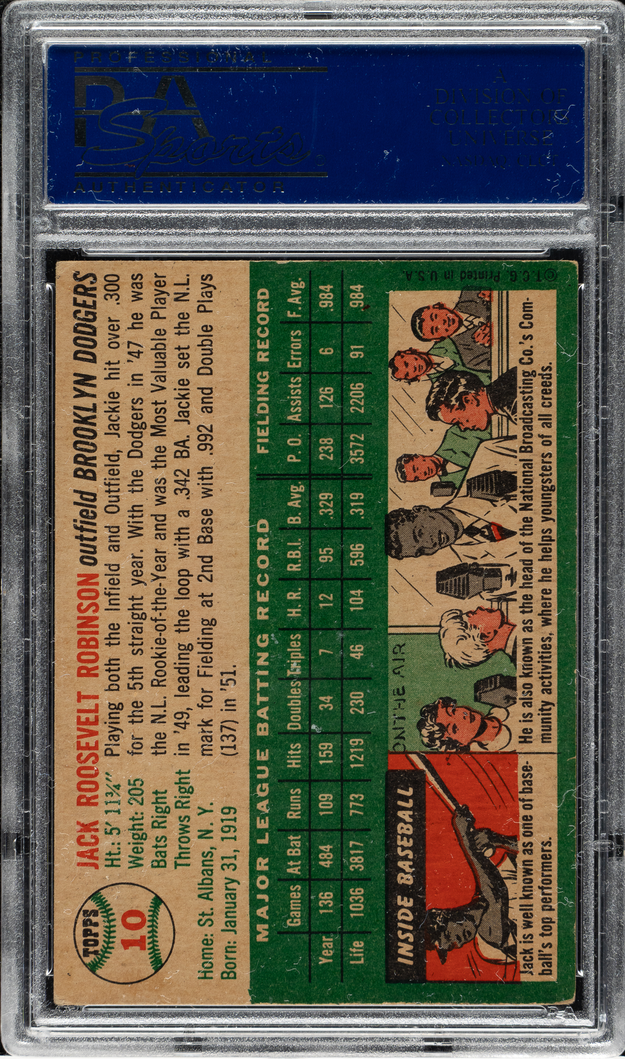 Graded EX 5 by PSA. Brooklyn Dodgers Hall of Famer Jackie Robinson.