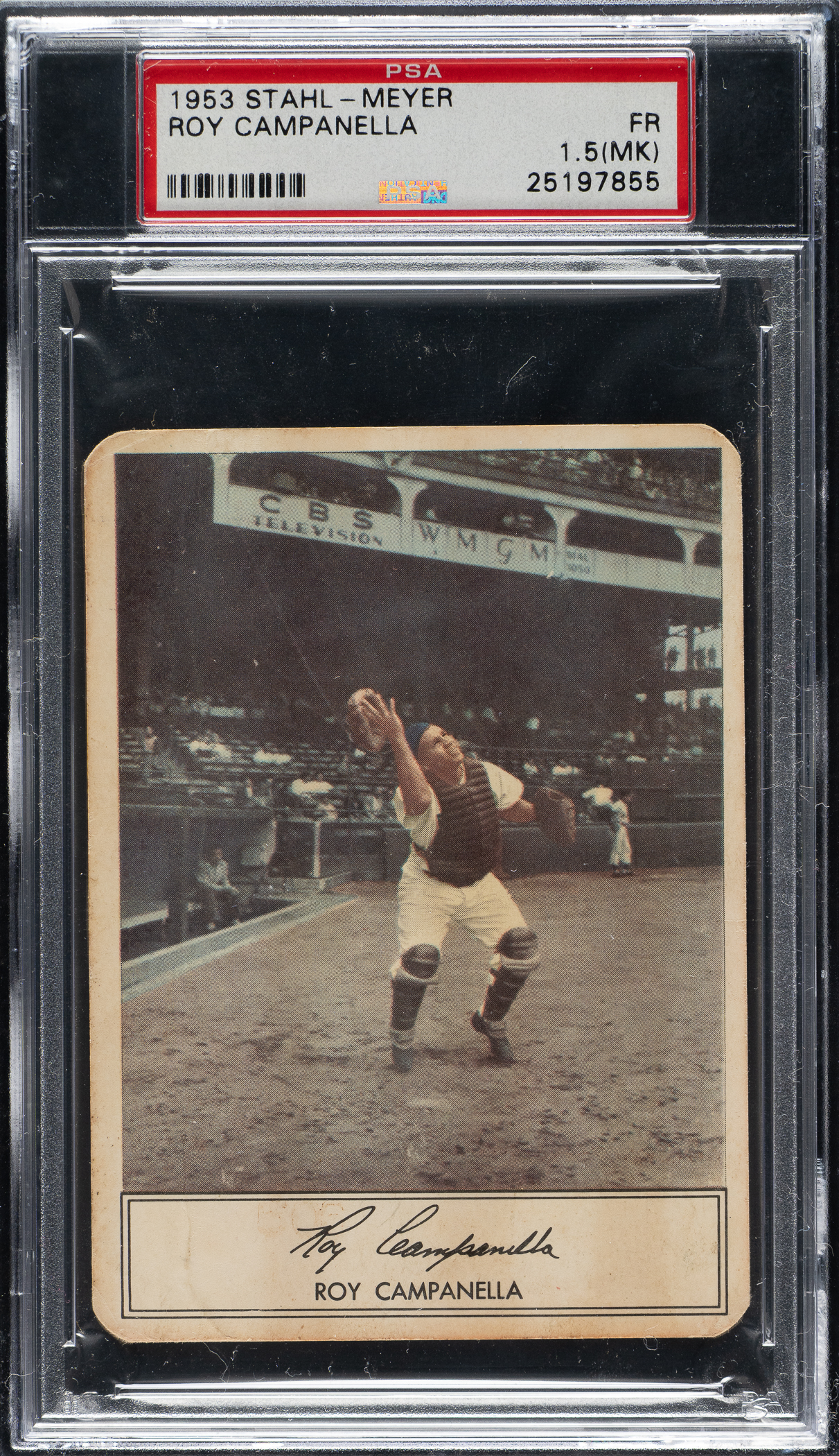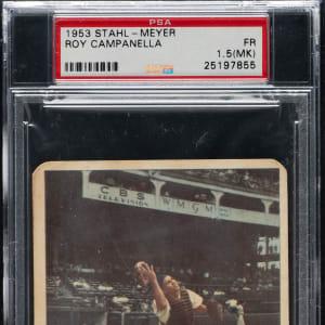 Graded FAIR 1.5 (MK) by PSA. Brooklyn Dodgers Hall of Famer Roy Campanella.