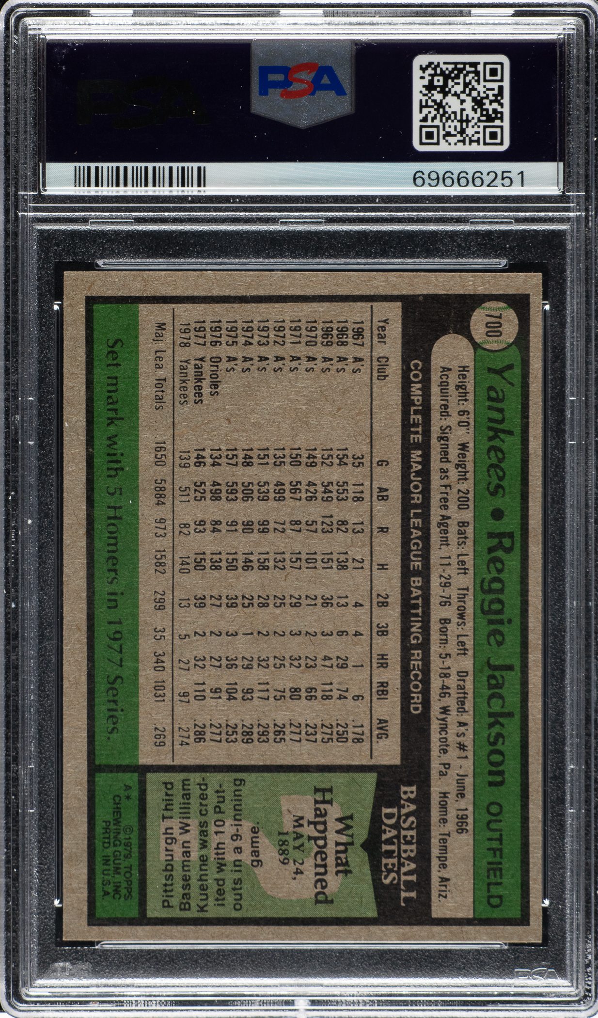 Graded GEM MINT 10 by PSA. New York Yankees Hall of Famer Reggie Jackson.
