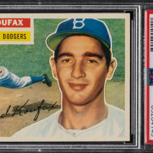 Graded NM-MT 8 by PSA. Brooklyn Dodgers Hall of Famer Sandy Koufax.