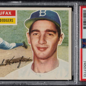 Lot # 1271: 1956 Topps #79 Sandy Koufax White Back PSA NM-MT 8