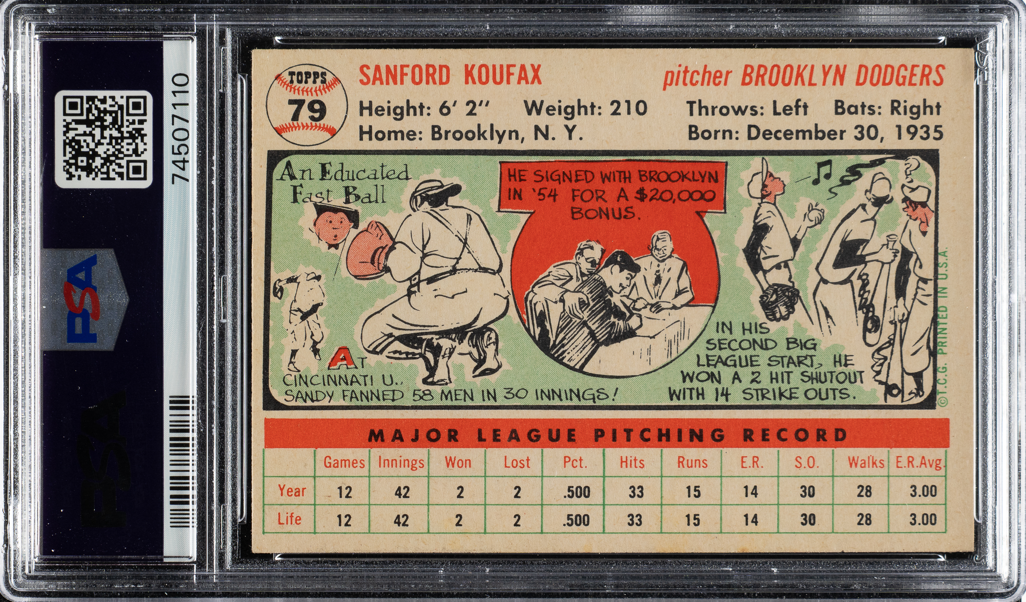 Graded NM-MT 8 by PSA. Brooklyn Dodgers Hall of Famer Sandy Koufax.