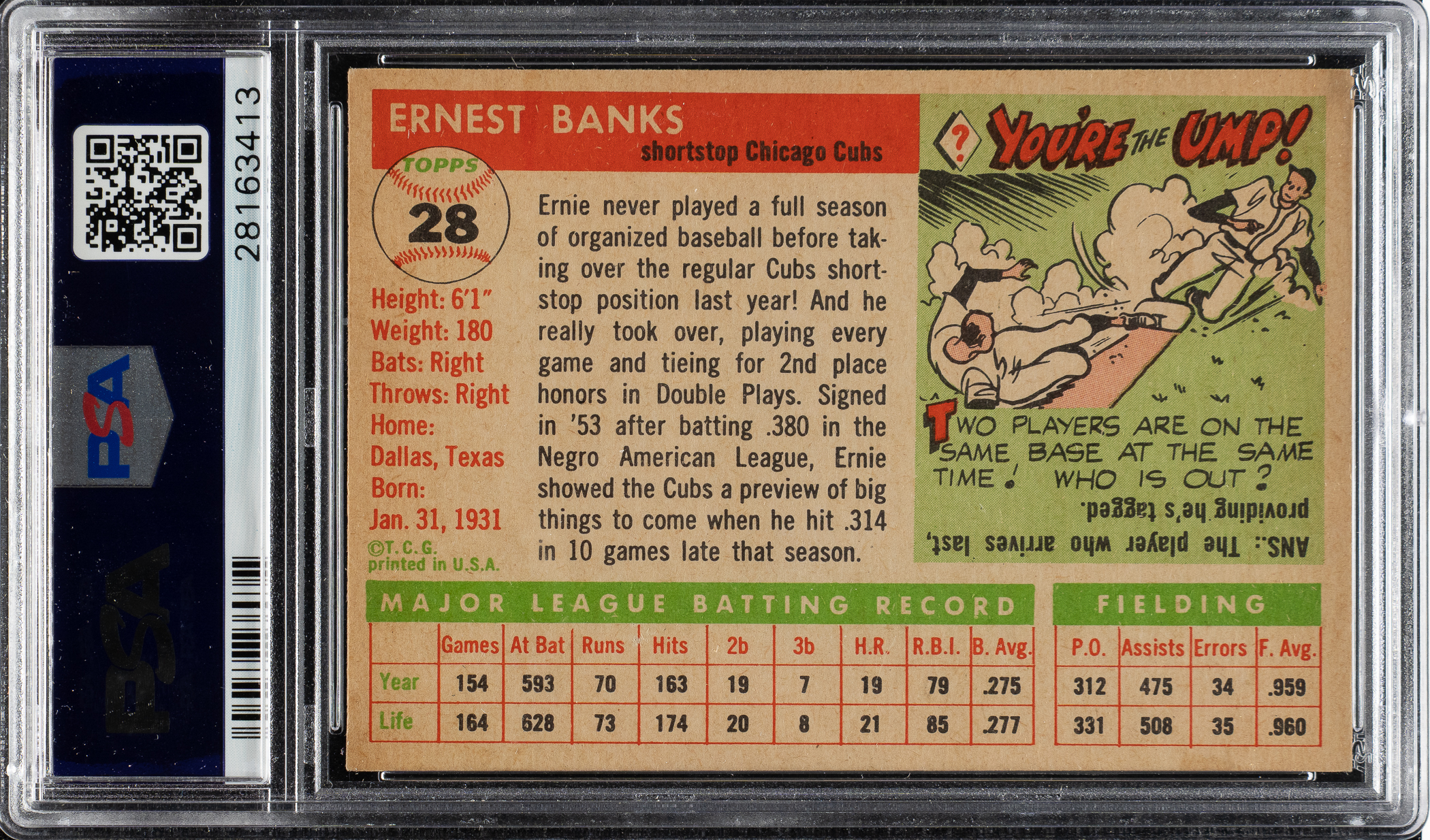 Lot # 1220: 1955 Topps #28 Ernie Banks PSA NM-MT 8