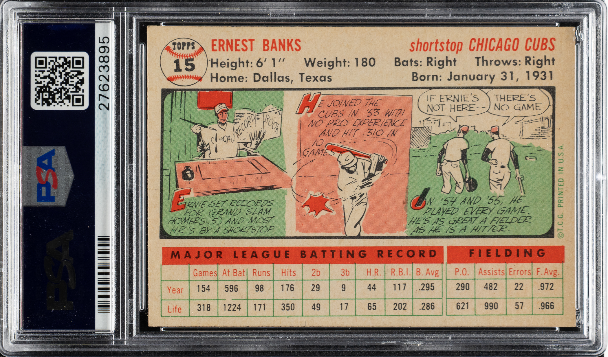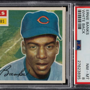 Graded NM-MT 8 by PSA. Chicago Cubs Hall of Famer Ernie Banks.
