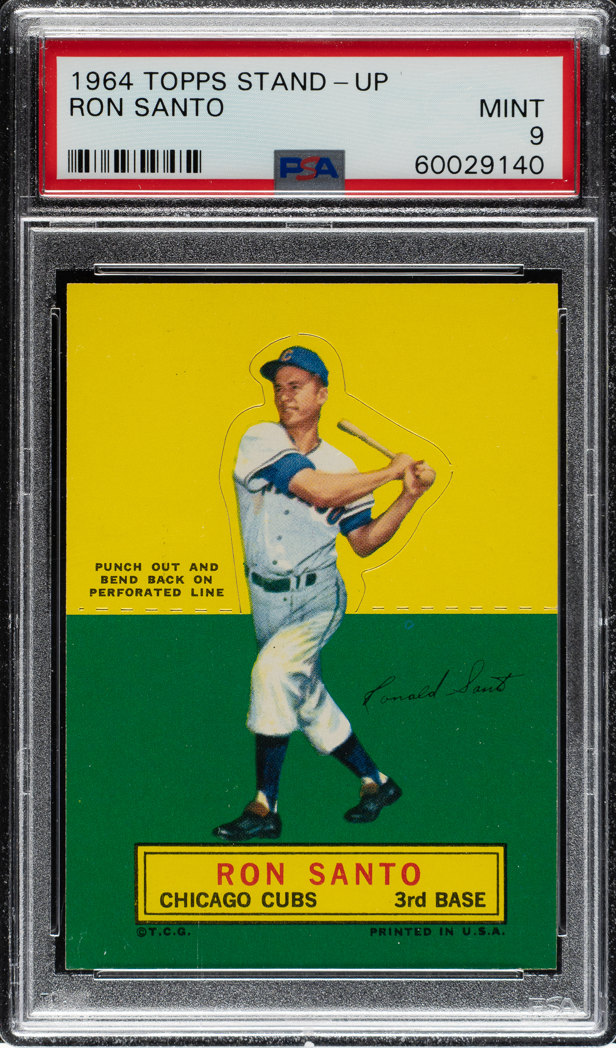 Graded MINT 9 by PSA. Chicago Cubs Hall of Famer Ron Santo. One of only three examples graded at this level by PSA with none higher!