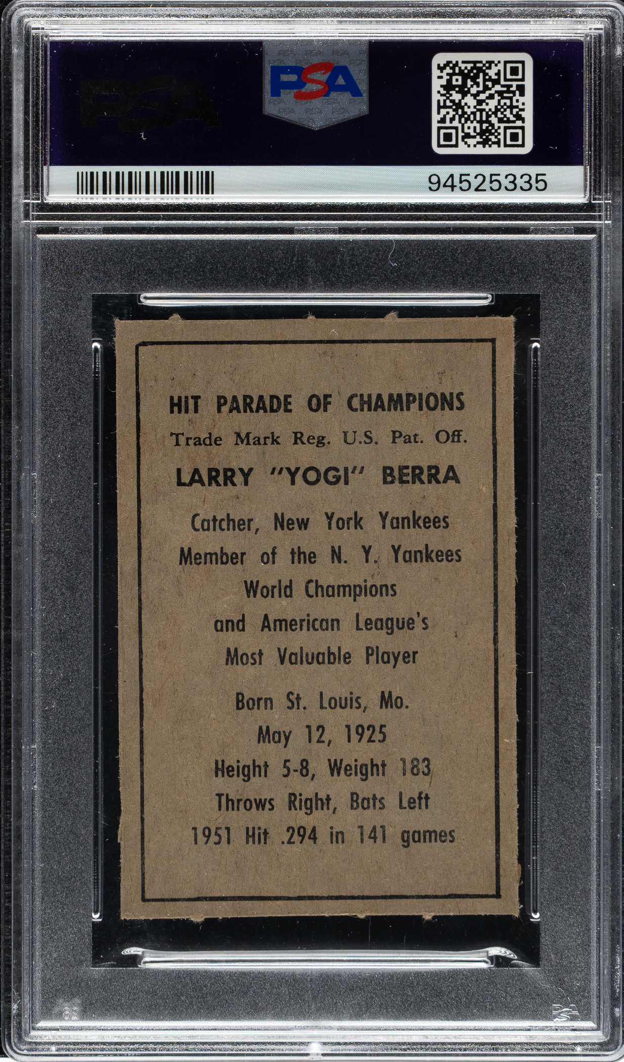 Lot # 958: 1952 Berk Ross Yogi Berra PSA NM-MT 8