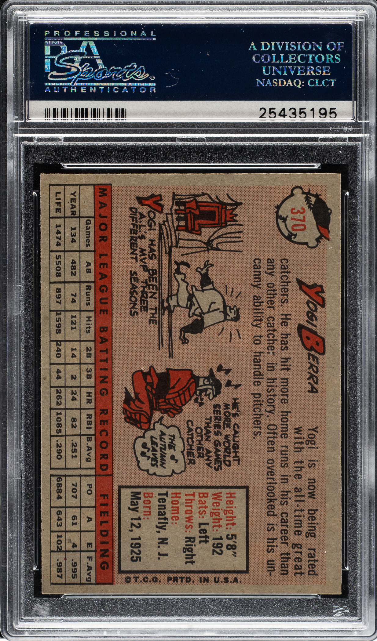 Graded NM-MT+ 8.5 by PSA. New York Yankees Hall of Famer Yogi Berra.