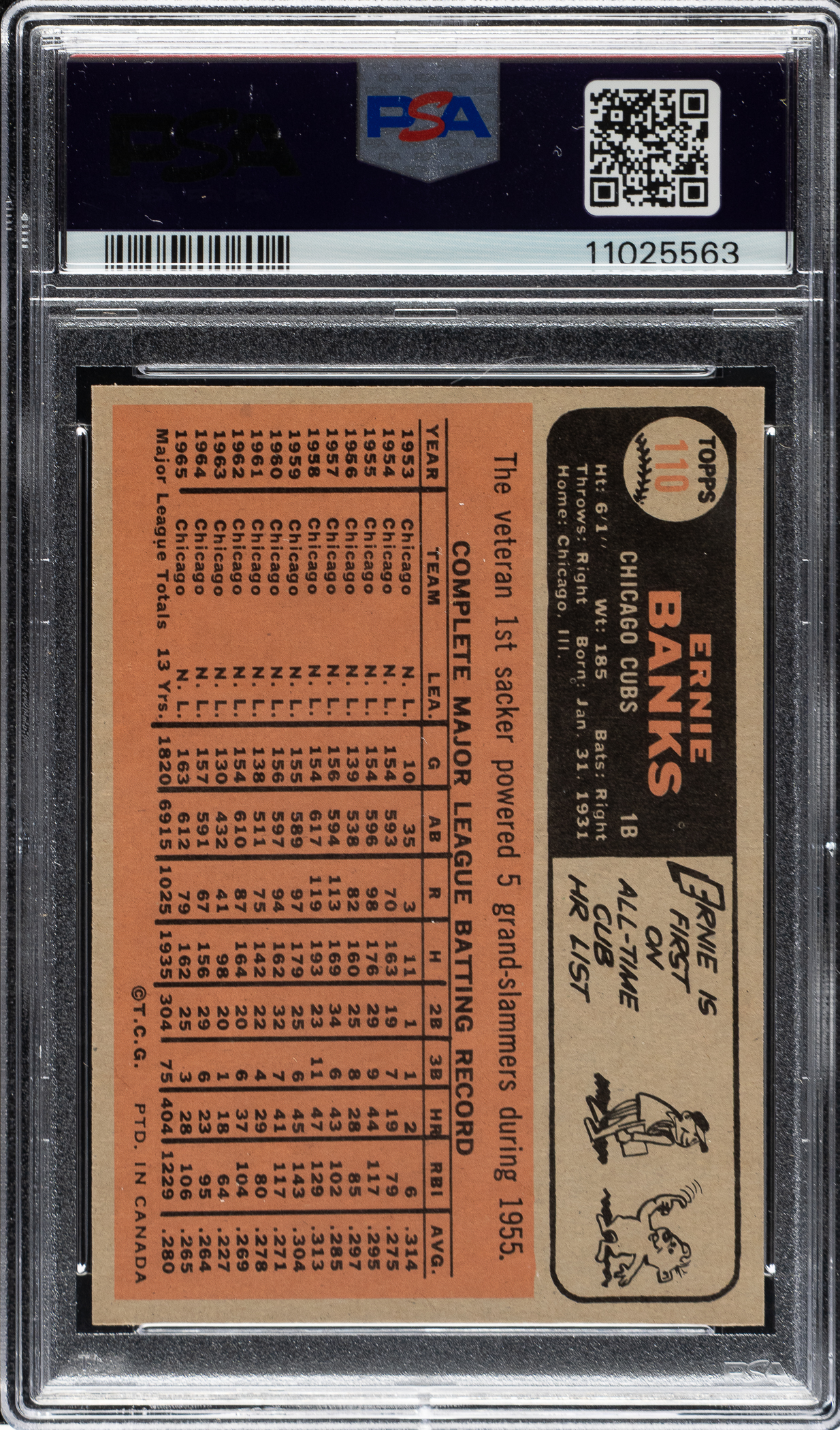 Graded MINT 9 by PSA. Chicago Cubs Hall of Famer Ernie Banks. One of only four examples graded at this level by PSA with none higher.