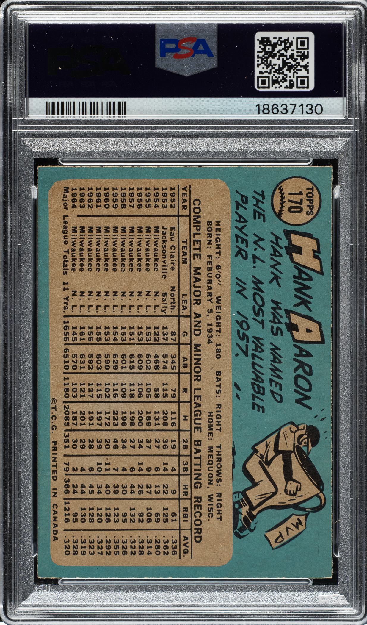 Graded NM-MT 8 by PSA. Milwaukee Braves Hall of Famer Hank Aaron.