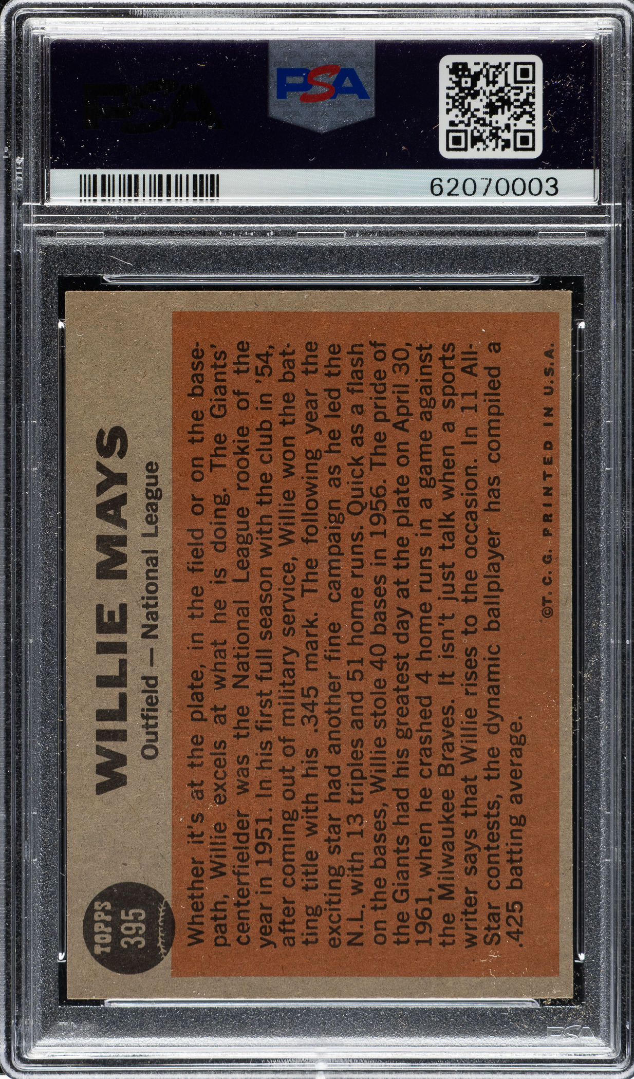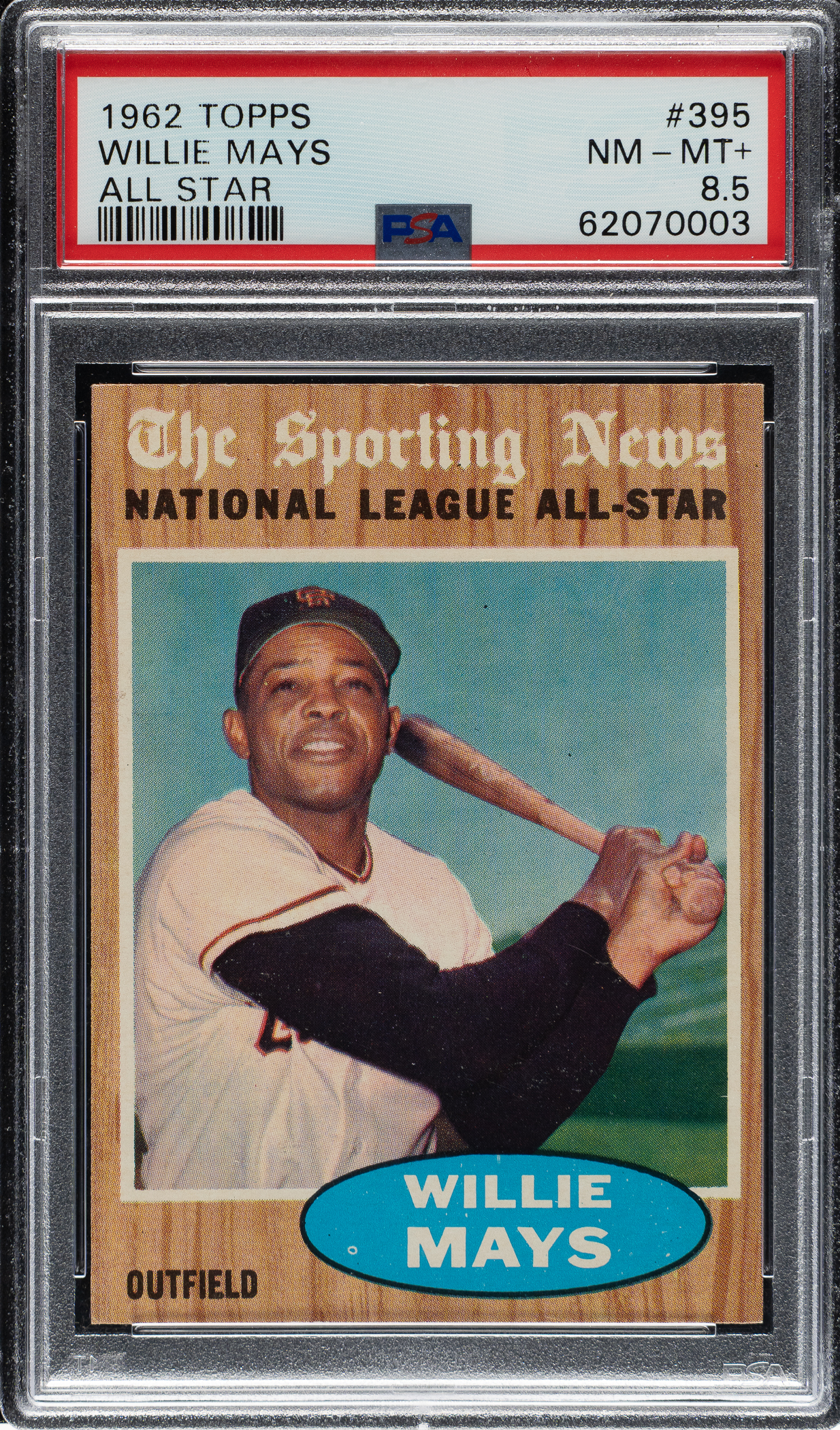 Graded NM-MT+ 8.5 by PSA. San Francisco Giants Hall of Famer Willie Mays.