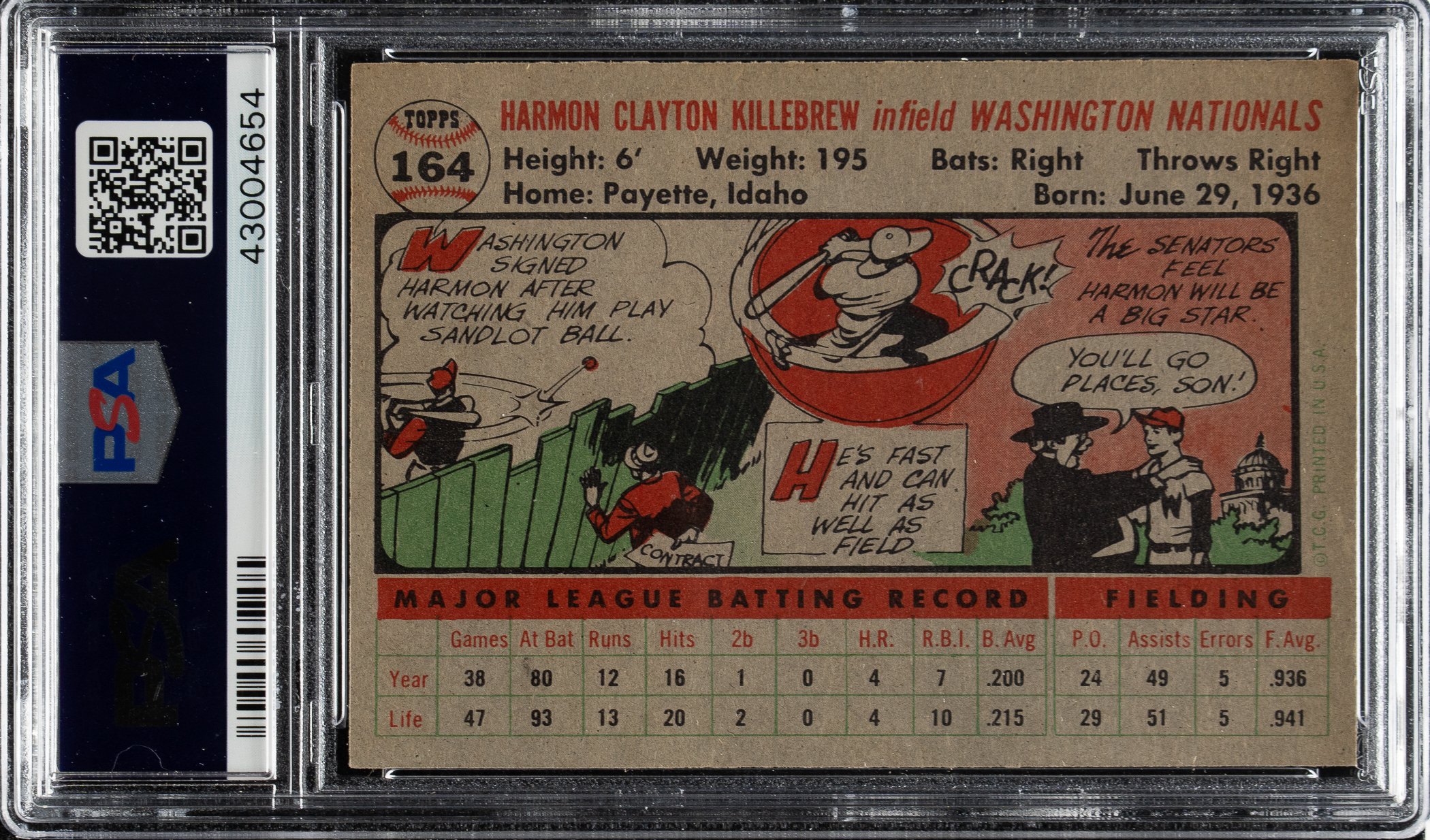 Graded NM-MT 8 by PSA. Washington Senators Hall of Famer Harmon Killebrew.